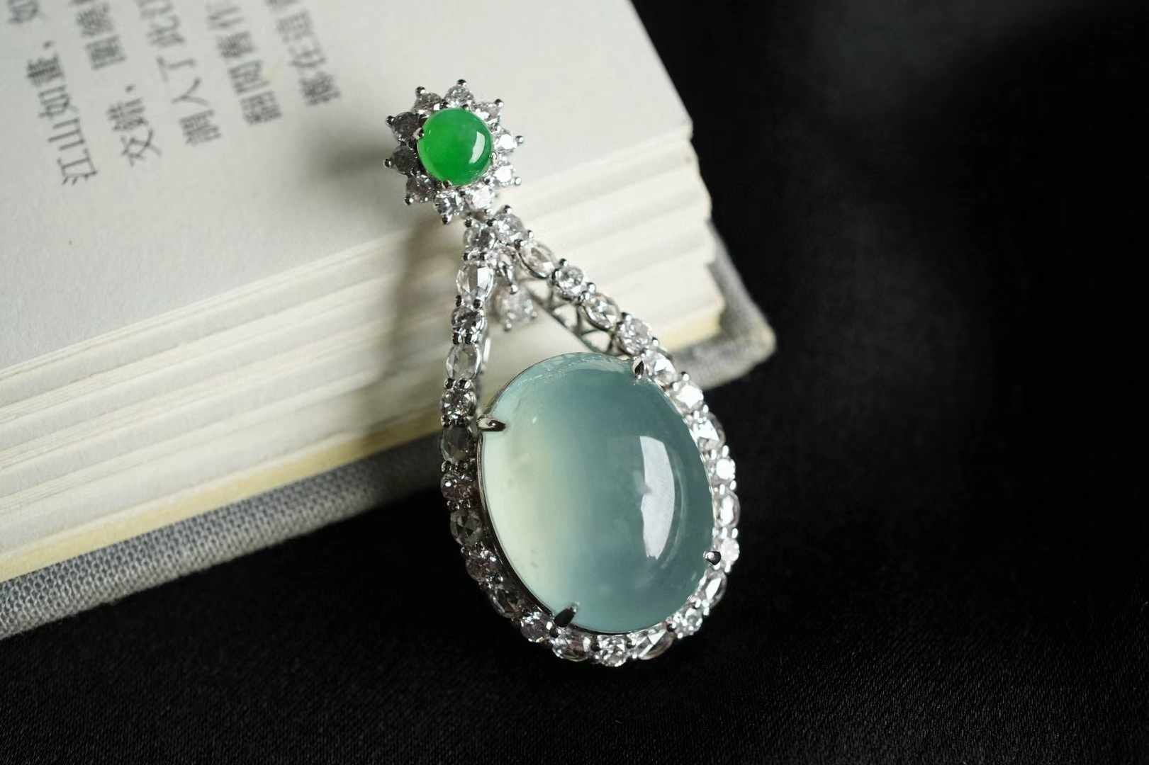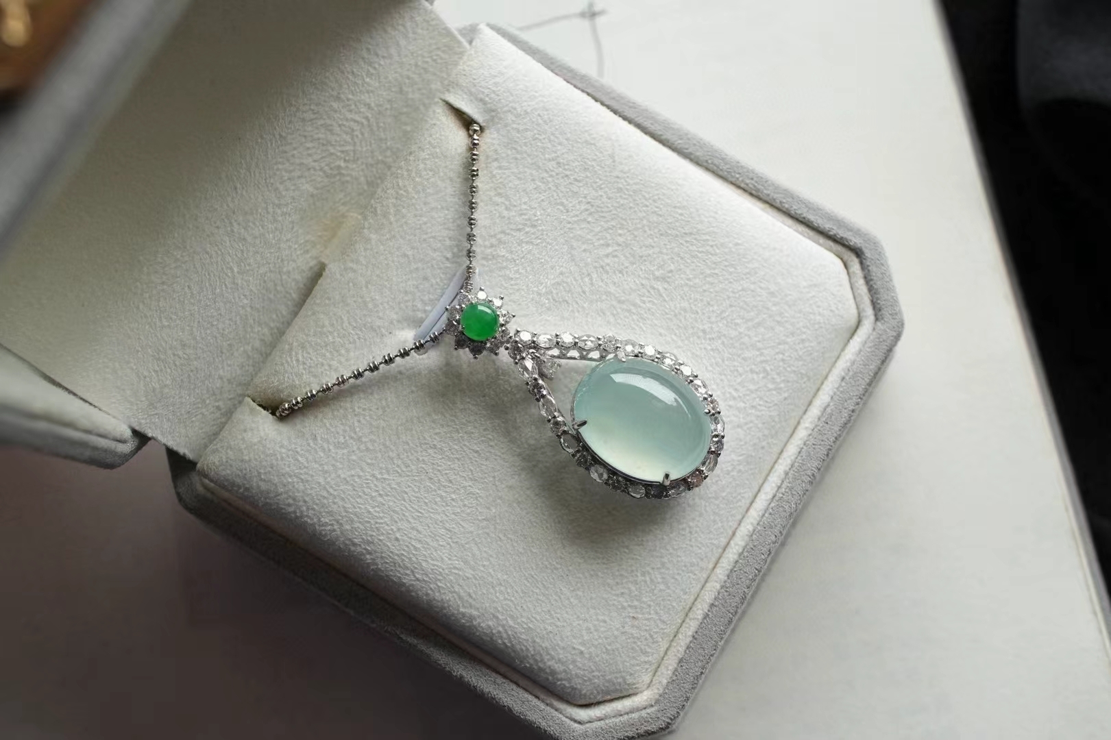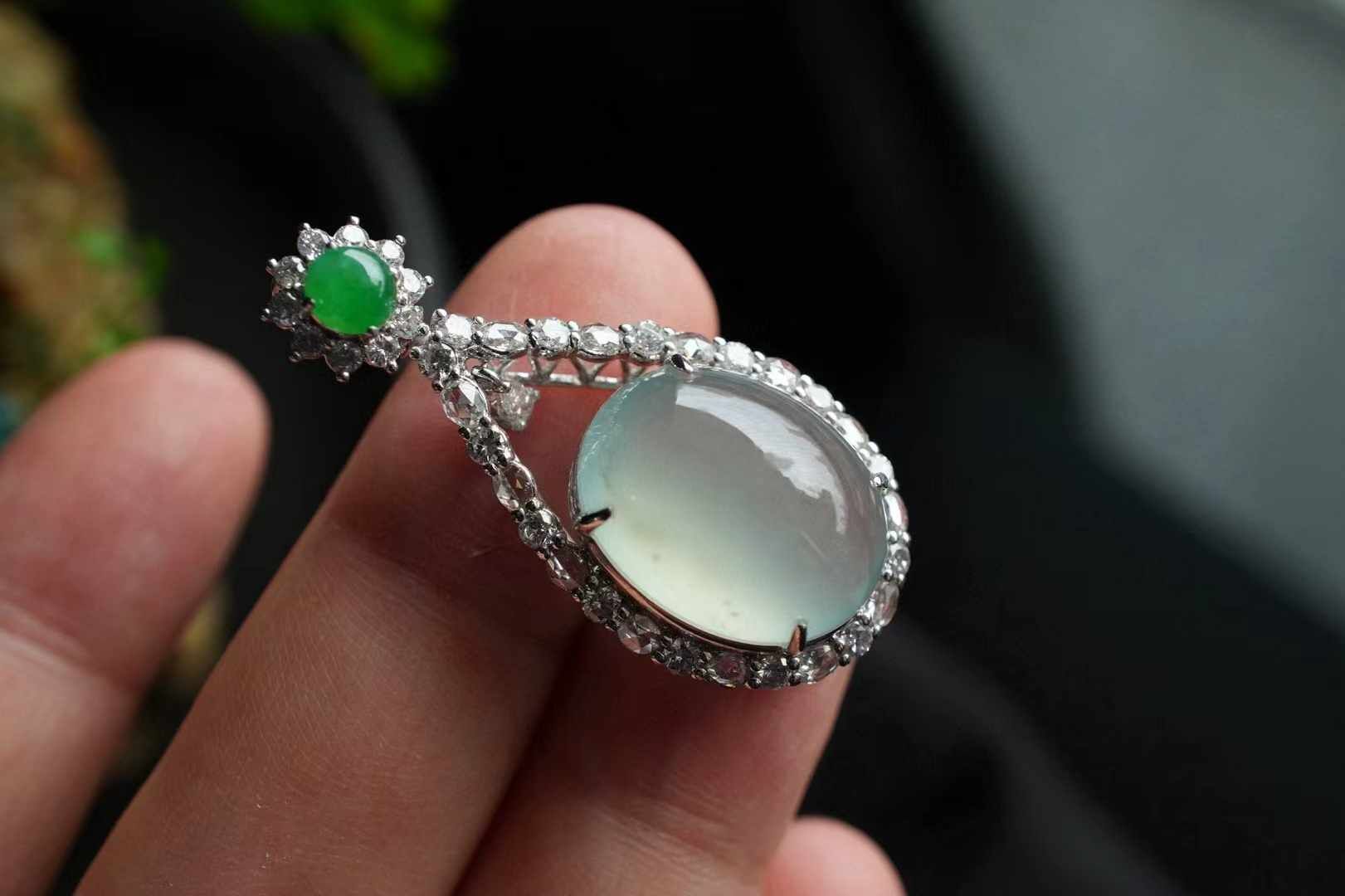 天然翡翠A玉,緬料,高貨晴水來一個,我最喜歡的種色。形態飽滿厚實,鴿子蛋大小,淡淡冰晴綠,清甜可人,一抹飄色更顯靈動。