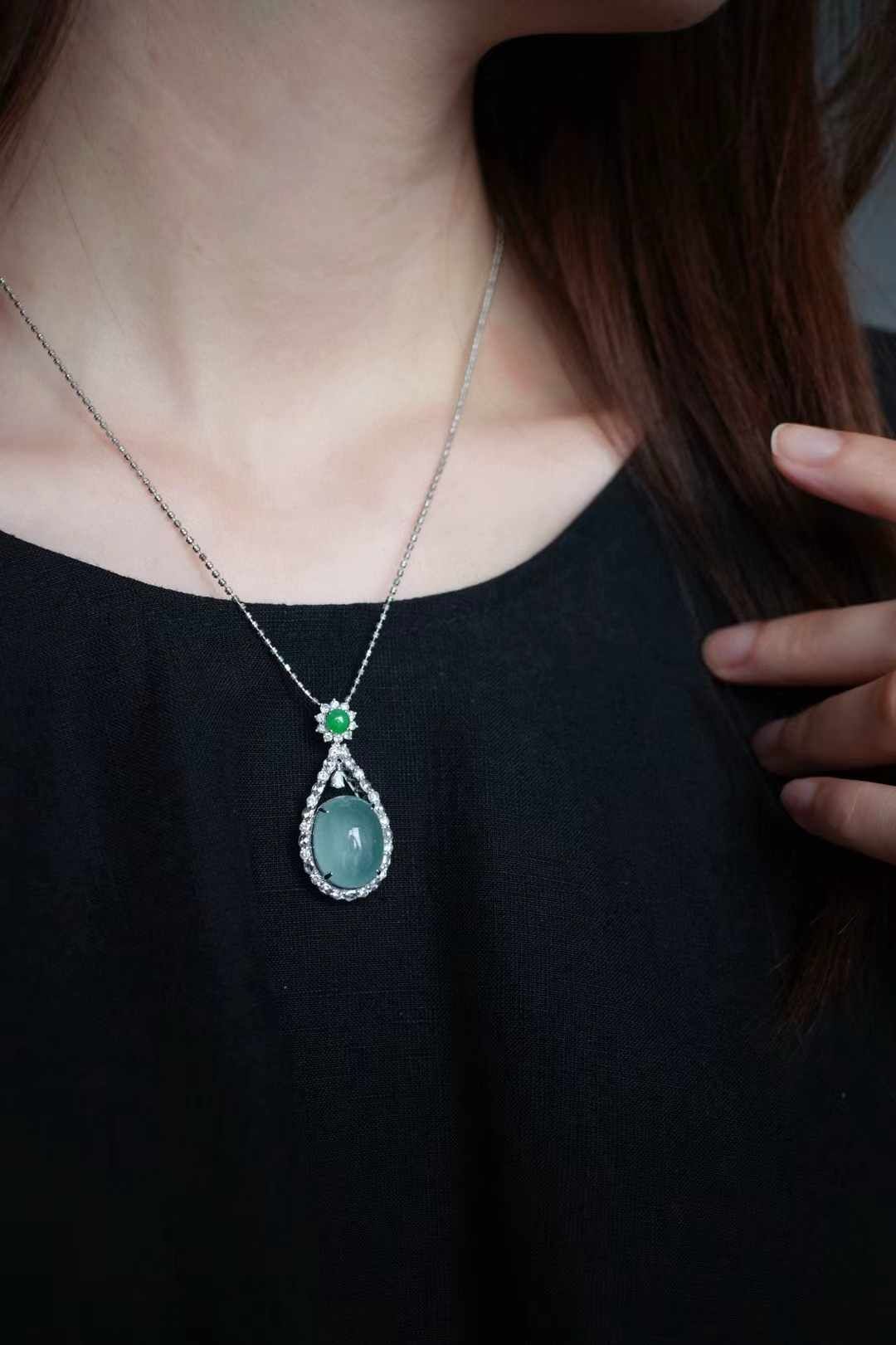 • 翡翠厚裝冰晴綠蛋面吊墜,天然翡翠A玉, 緬甸玉, Jade, Jadeite