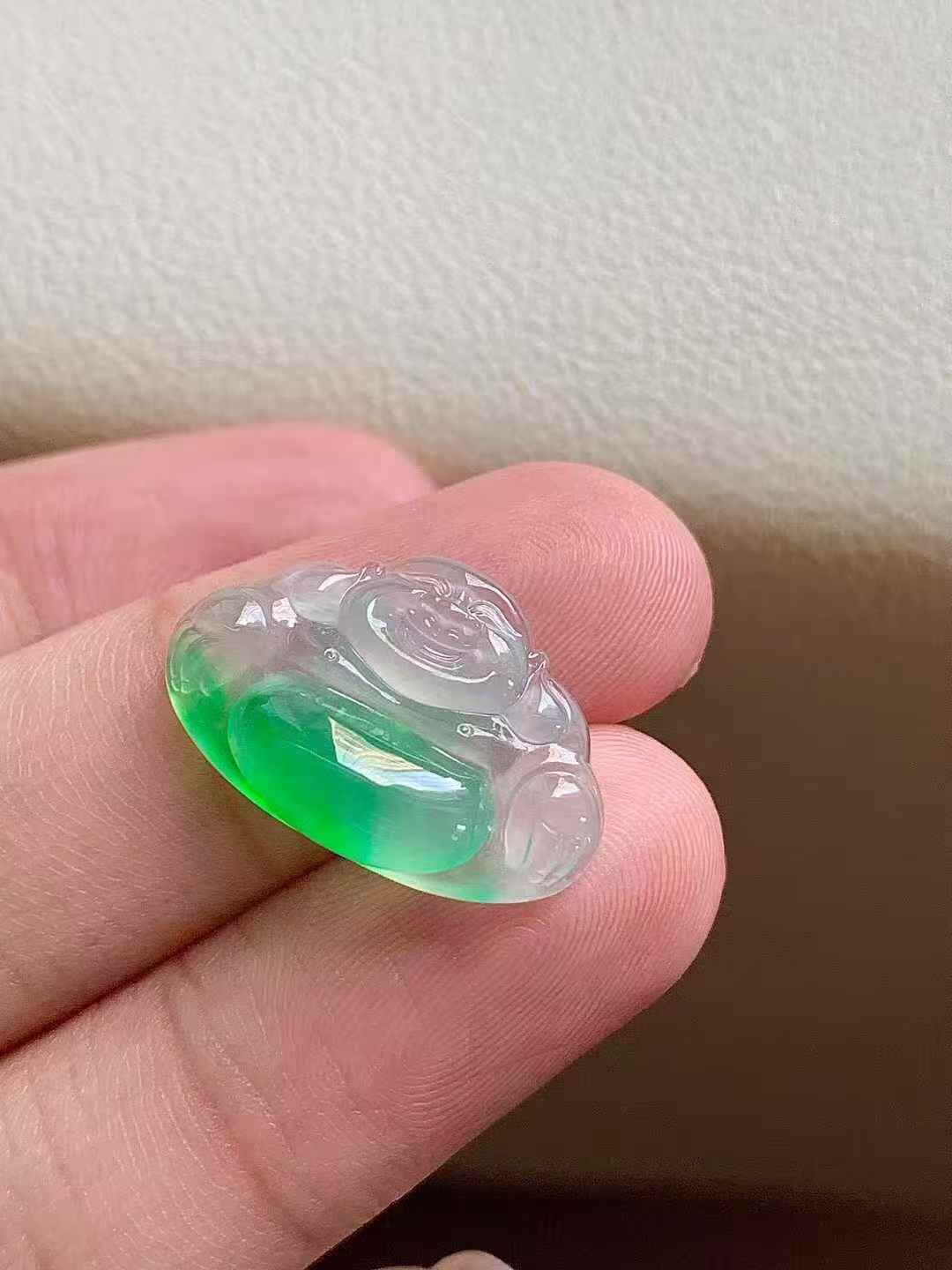 天然翡翠A玉,種老細膩,色陽濃郁起膠。
