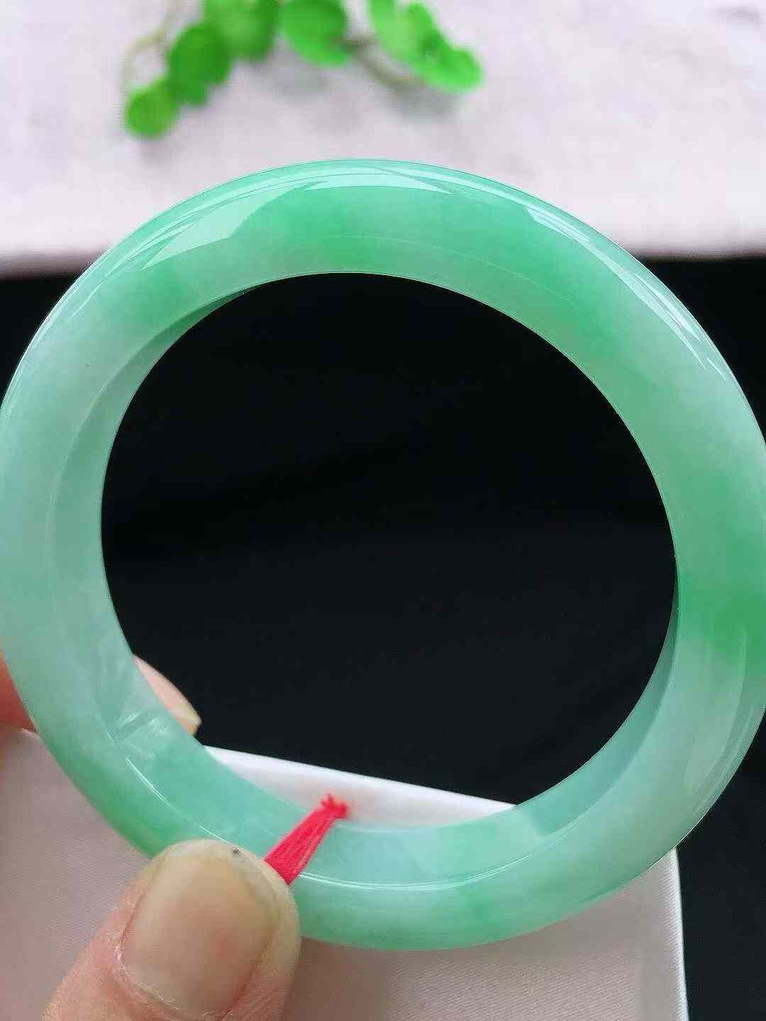• 冰飄綠翡翠正圈手鐲,天然翡翠A玉, 緬甸玉, Jade, Jadeite