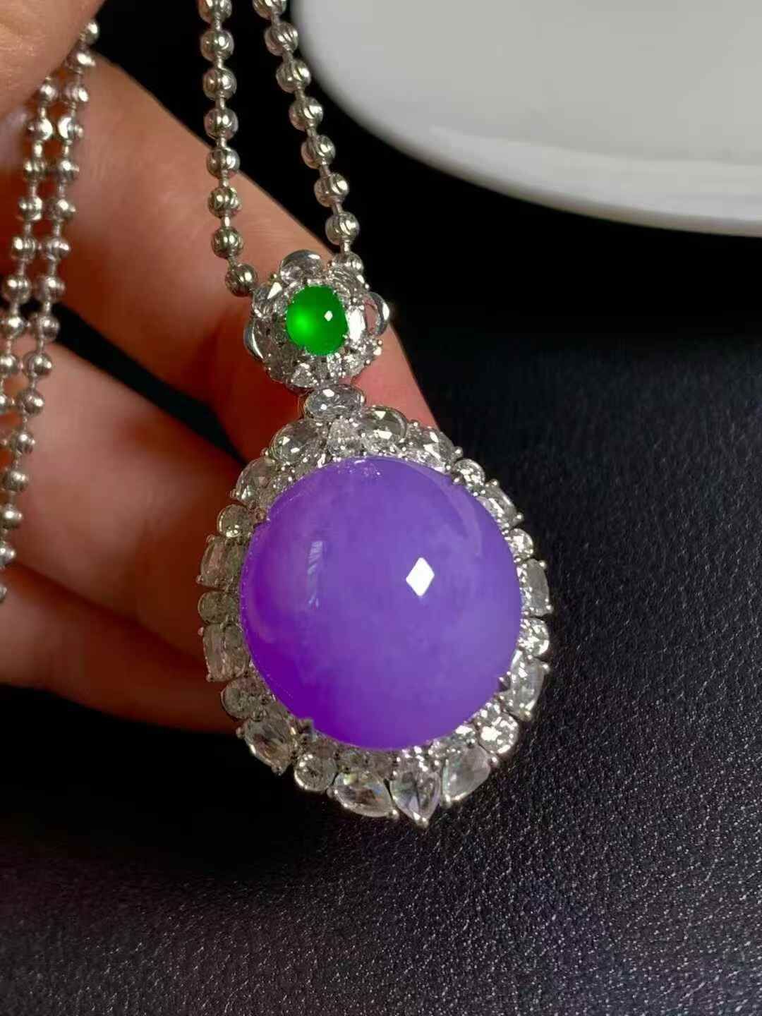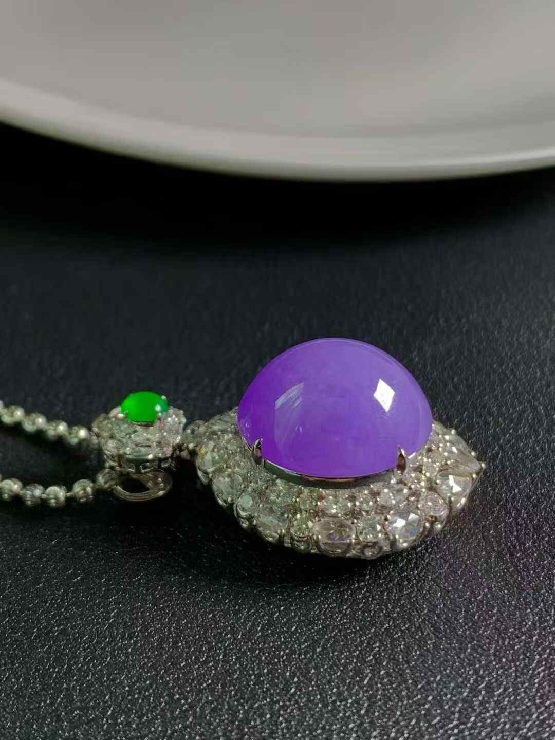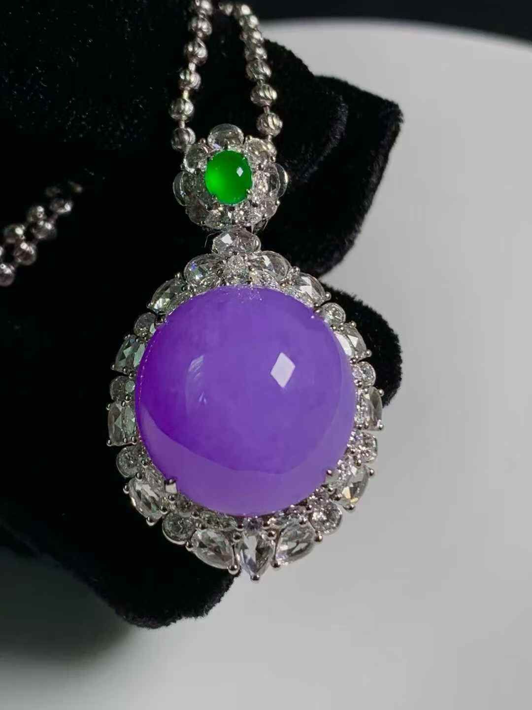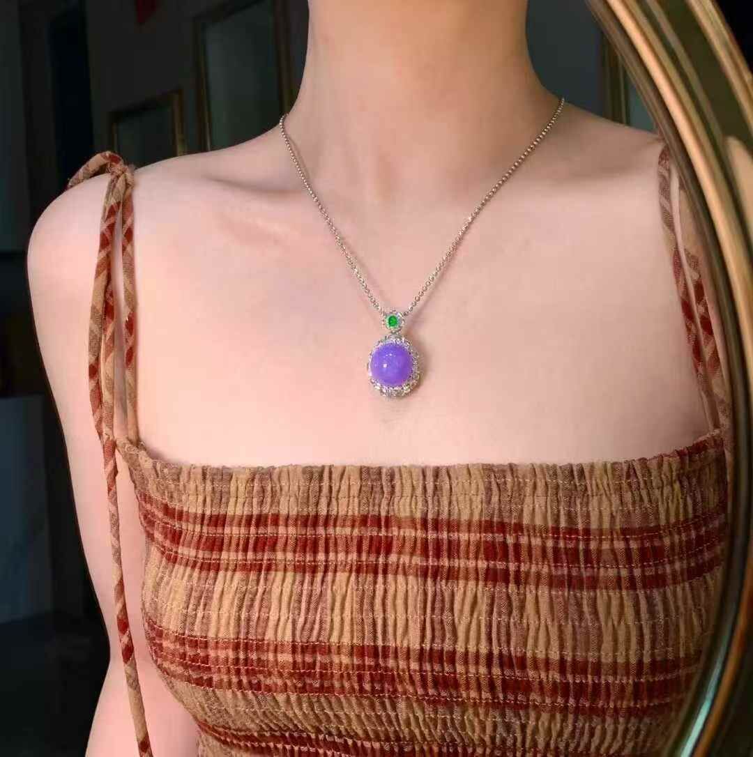 • 翡翠紫羅蘭蛋面吊墜,天然翡翠A玉, 緬甸玉, Jade, Jadeite