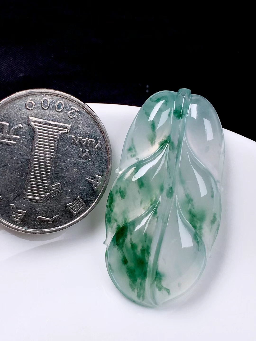 • 冰種飄花葉子, 天然翡翠A玉, 緬甸玉, Jade, Jadeite