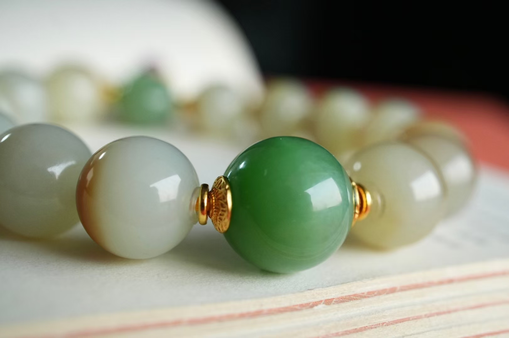 - 天然玉石在不同光線下,會呈現出不同的顏色變化;