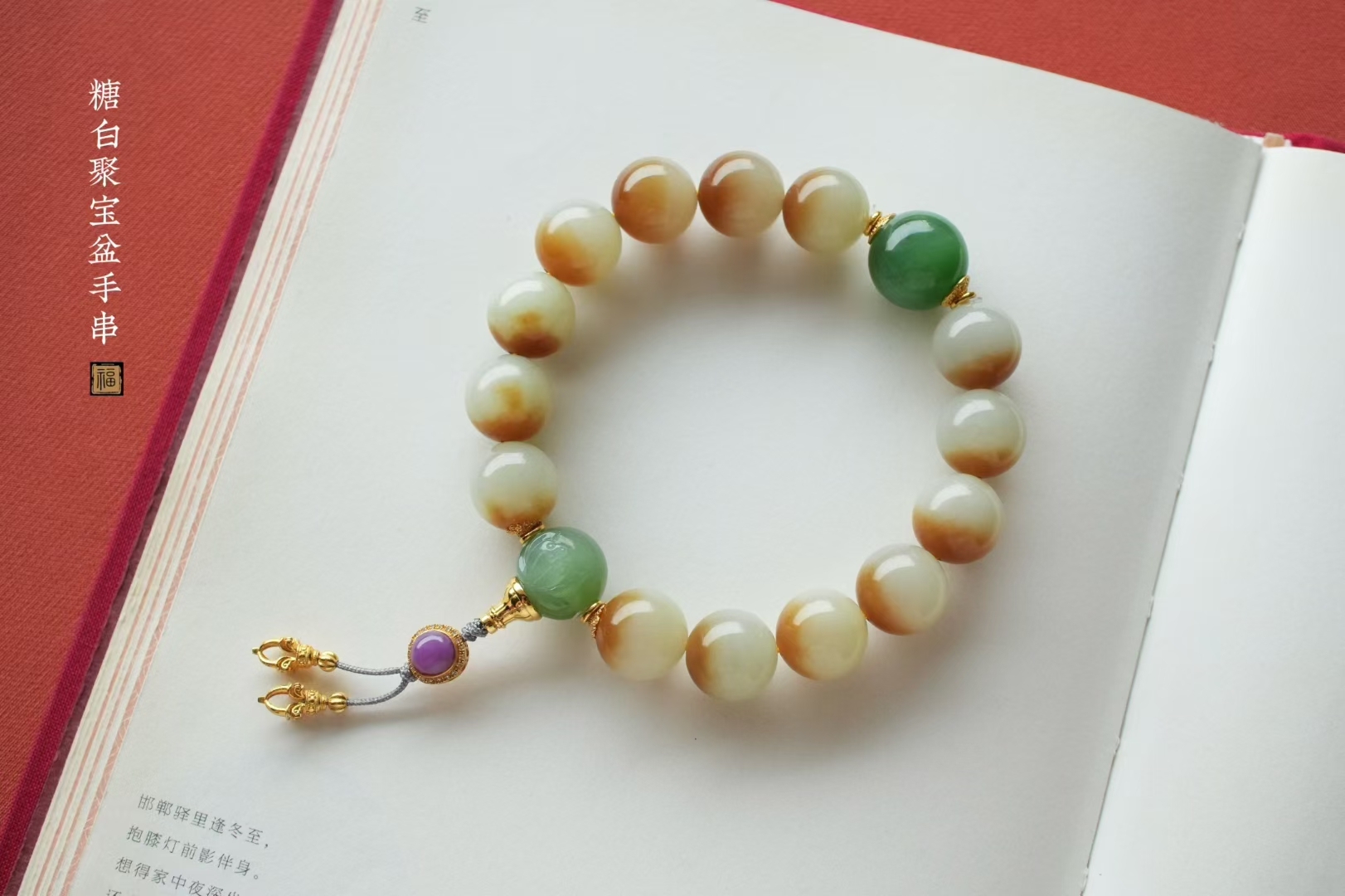 118430 和田玉且末糖白料聚寶盆手串 (12mm直徑)