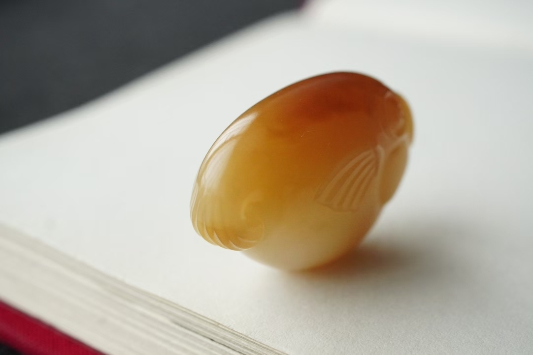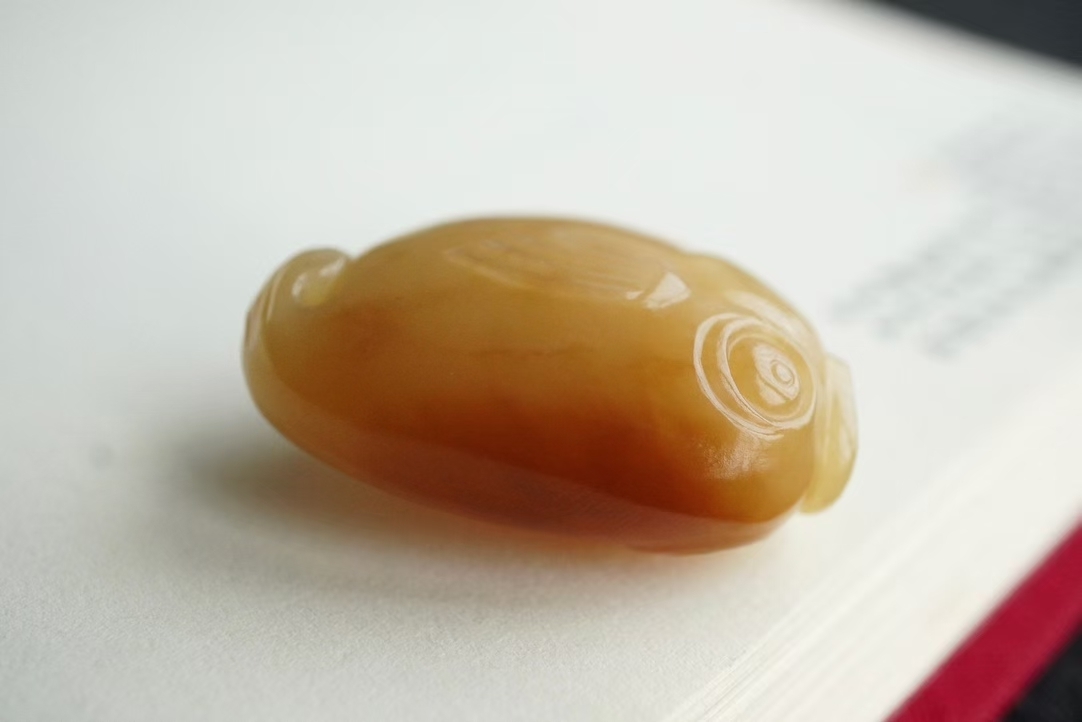 天然和田玉,新疆且末糖,糖色柔美如蜜暈染,一抹濃郁糖色在背有鴻運當頭之美意,料子凝實,油性極佳,無棉無水線,無雜無裂完美品相。