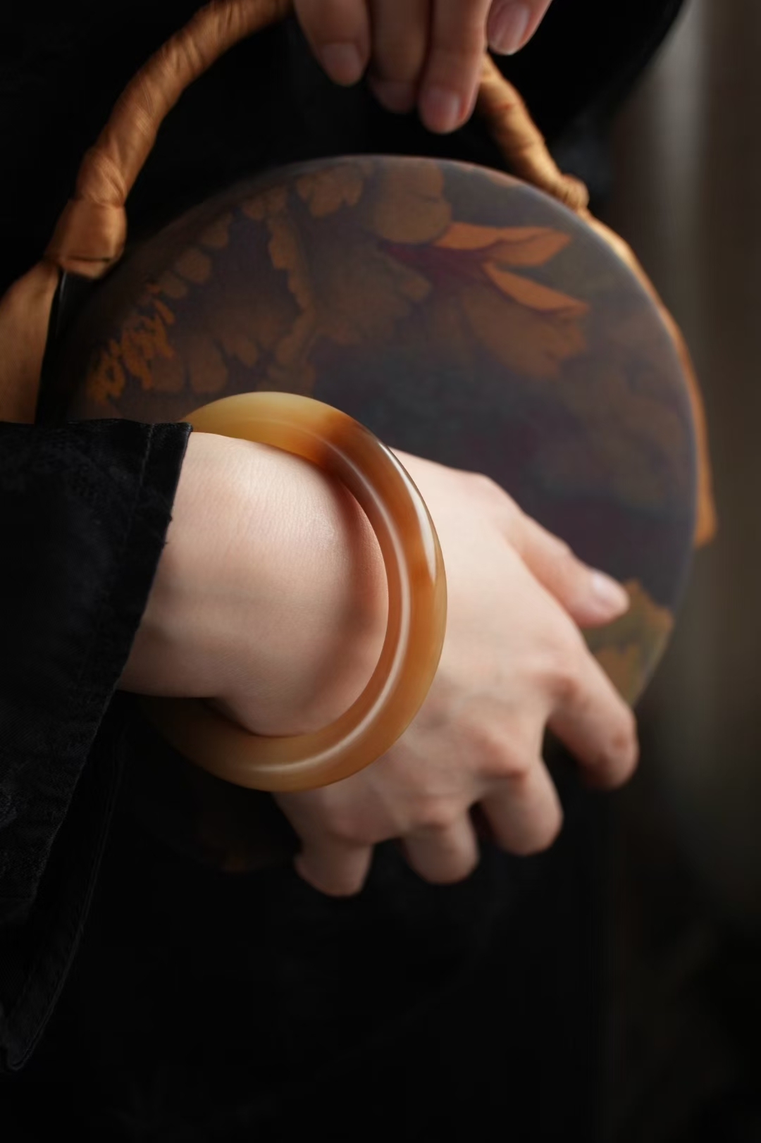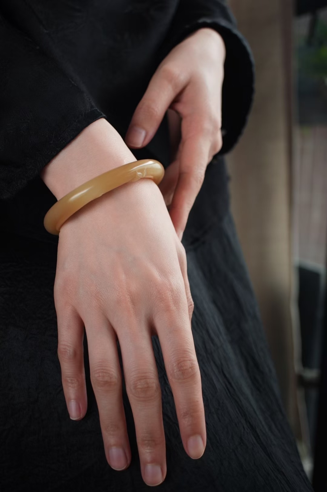 天然和田玉,新疆且末金山礦料,一抹濃糖色如落日熔金,在腕間暈開溫柔漸變,老熟油潤的料子自帶歲月沉澱的細膩脂感,絕非新料能及!