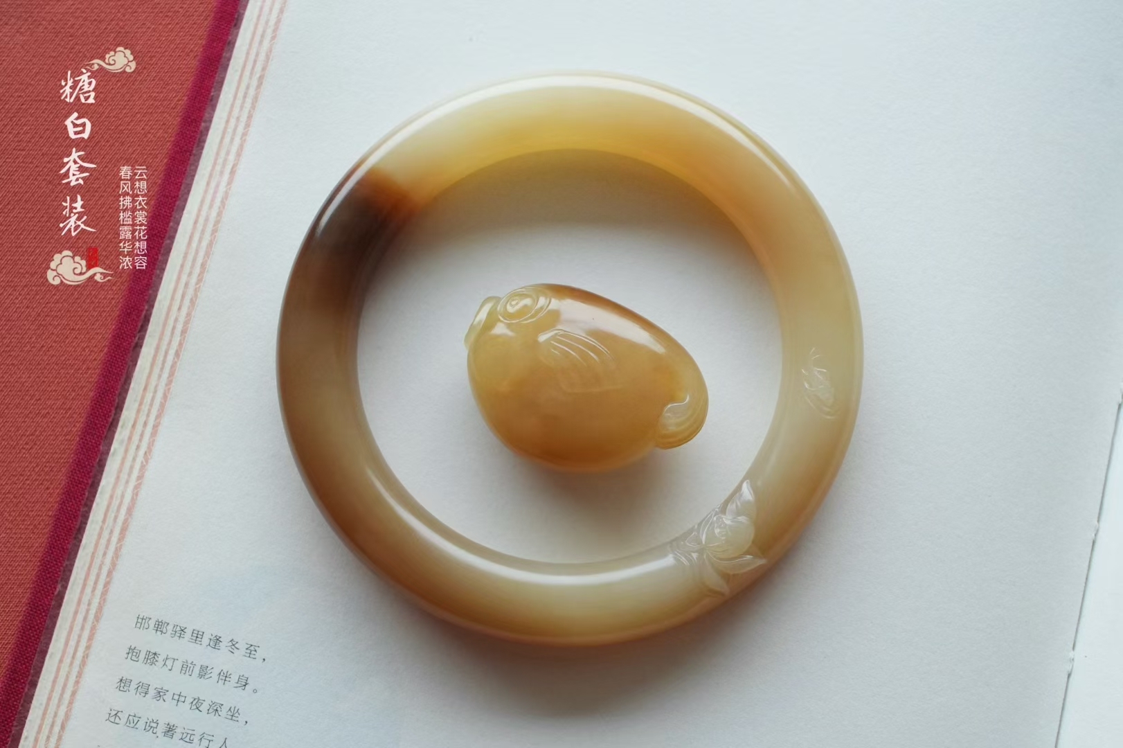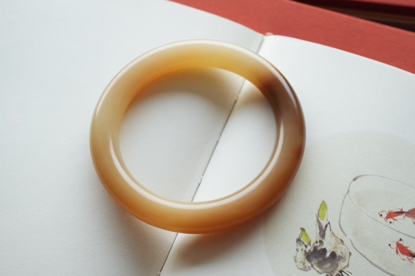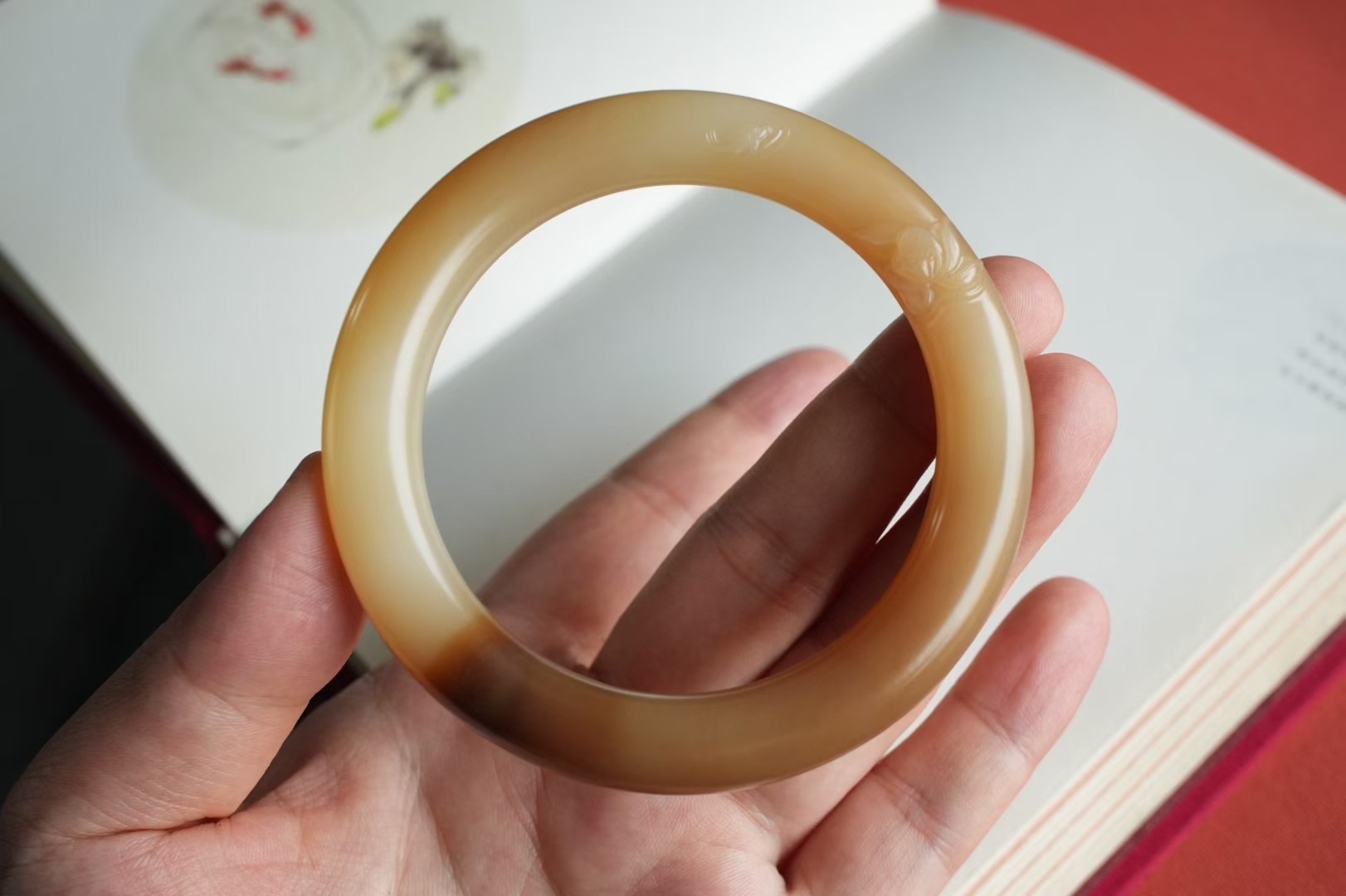 肉質非常溫潤,鐲身乾淨無棉雜,肉眼無水線,淺雕清荷錦鯉,花瓣舒展間錦鯉靈動飄逸,寓意極好,老料子越戴越潤,上手超有韻味。