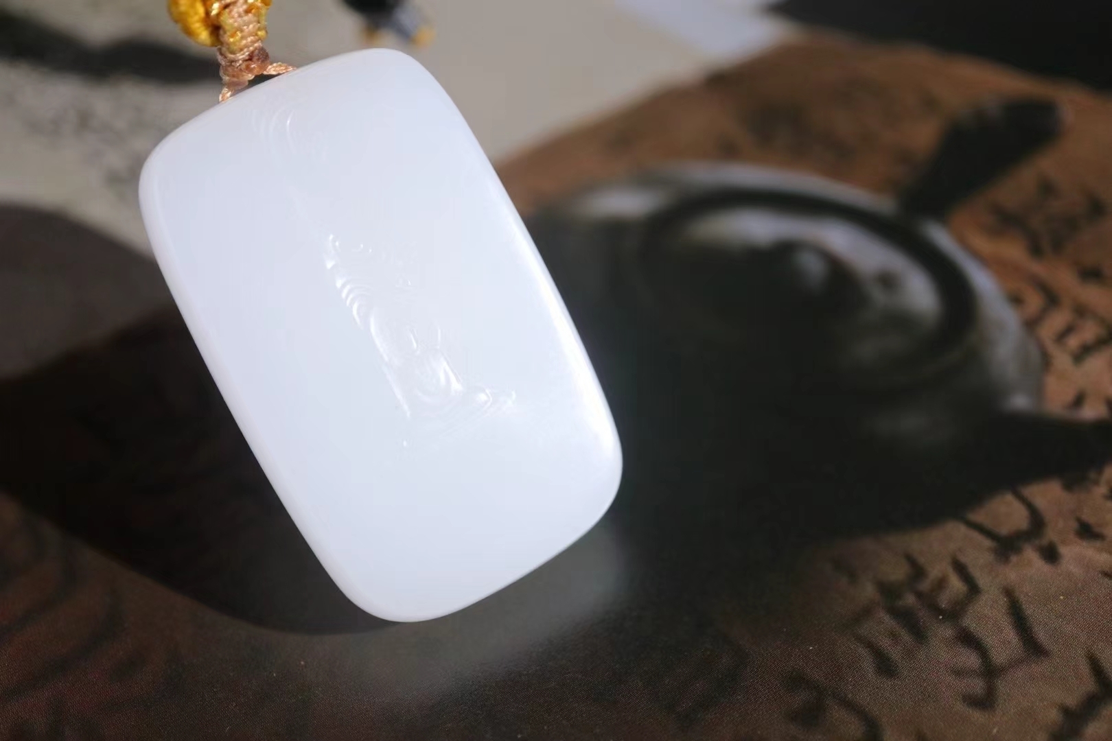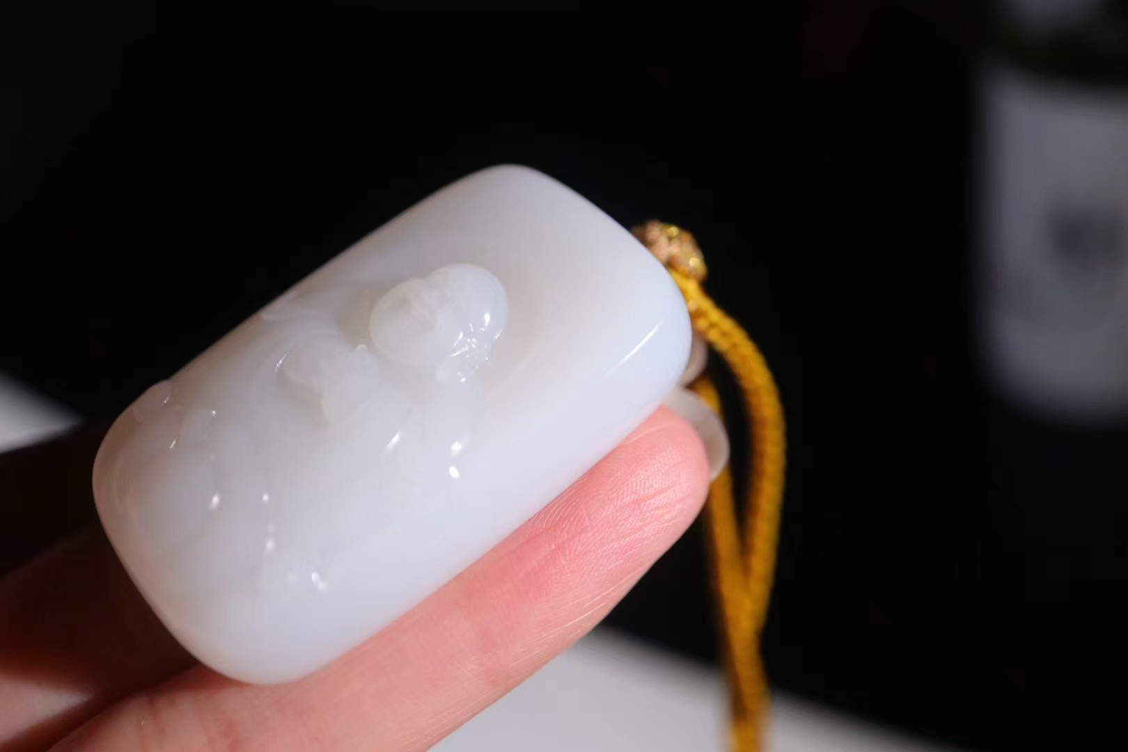 • 和田白玉山料彌勒佛掛件,天然和田玉軟玉