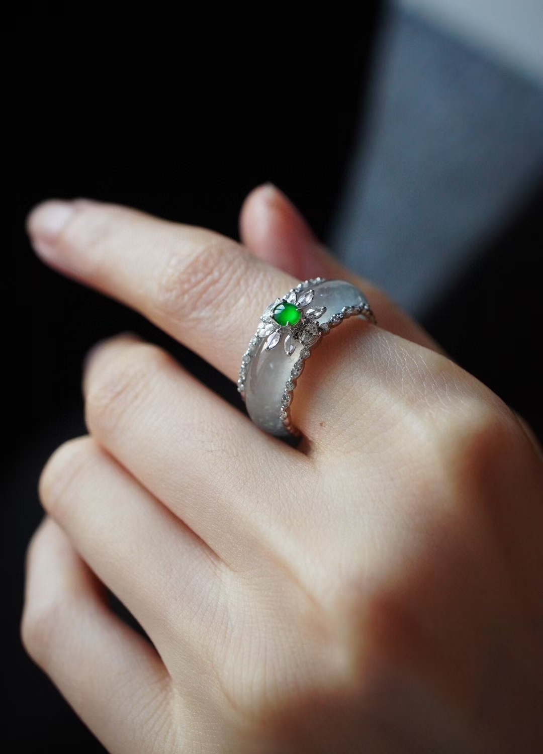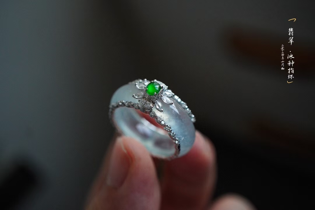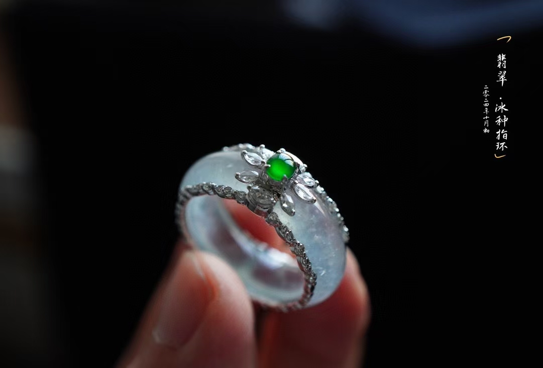 • 翡翠白月光高冰種指環,天然翡翠A玉, 緬甸玉, Jade, Jadeite