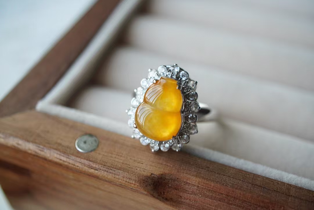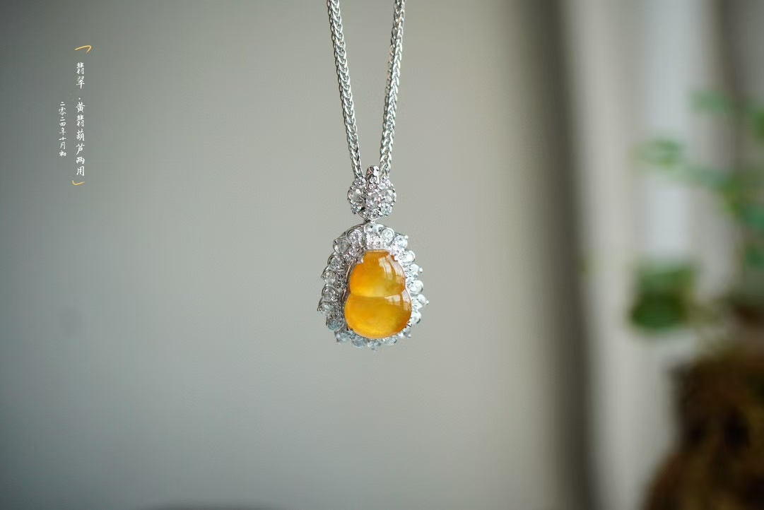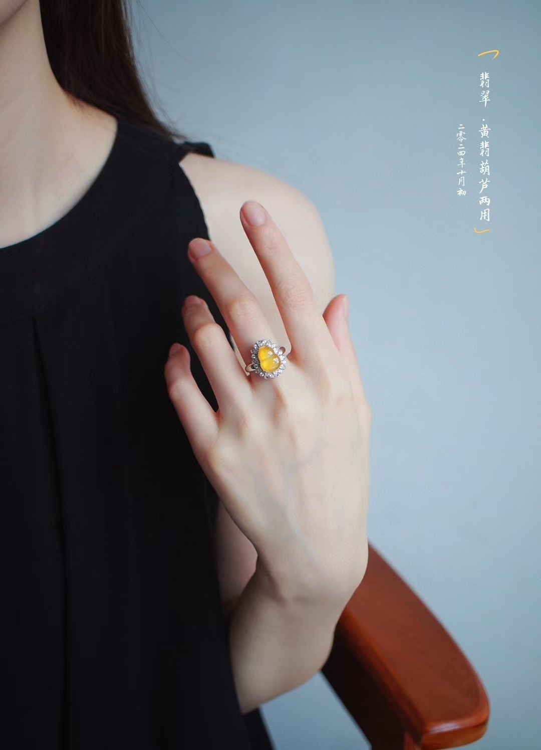 • 冰種黃翡葫蘆戒指吊墜兩用款,天然翡翠A玉, 緬甸玉, Jade, Jadeite