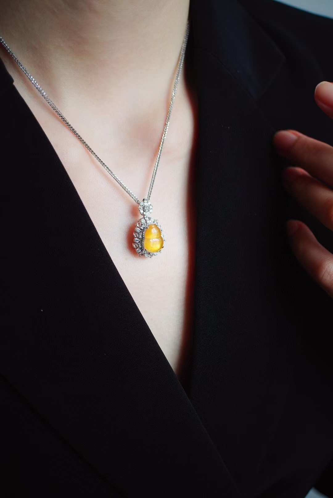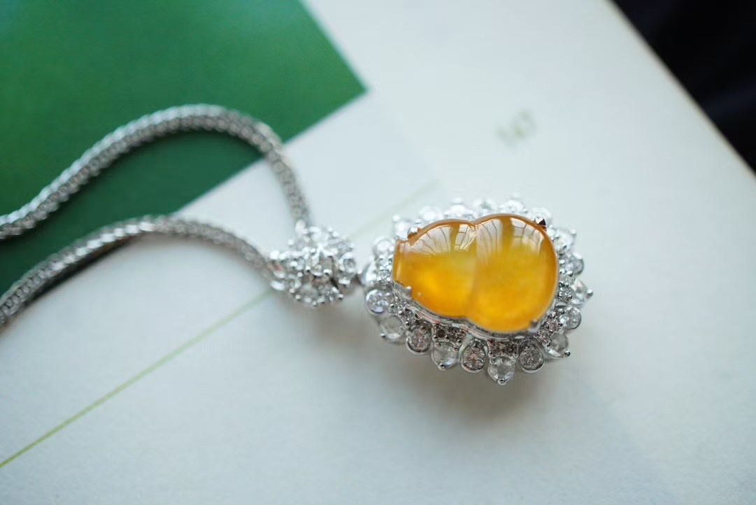 天然翡翠A玉,金燦燦的,飽滿圓潤,太喜歡它了。色濃且正,起光感,細潤靈動,佩戴落落大方。黃翡明亮溫暖,很容易讓人聯想到:秋日暖陽,金桂飄香,雅而端方。美極了,越看越喜歡!