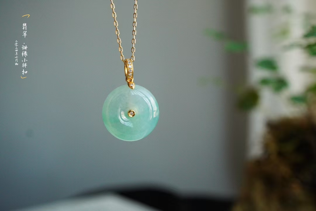 • 翡翠冰甜晴綠平安扣吊墜 (15.8mm直徑),天然翡翠A玉, 緬甸玉, Jade, Jadeite