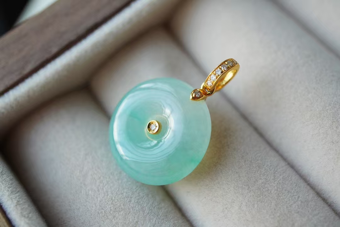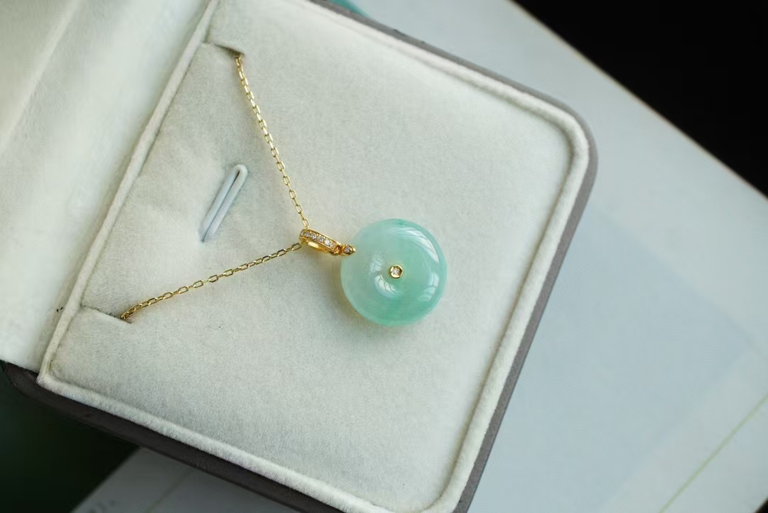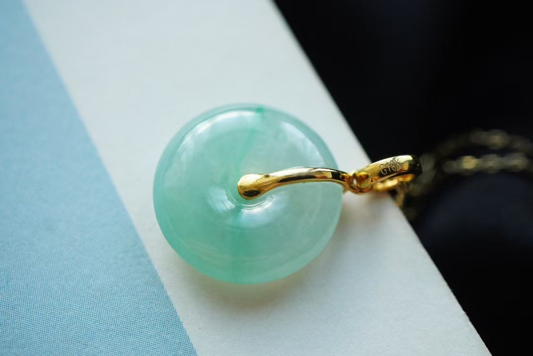 119821 翡翠冰甜晴綠平安扣吊墜