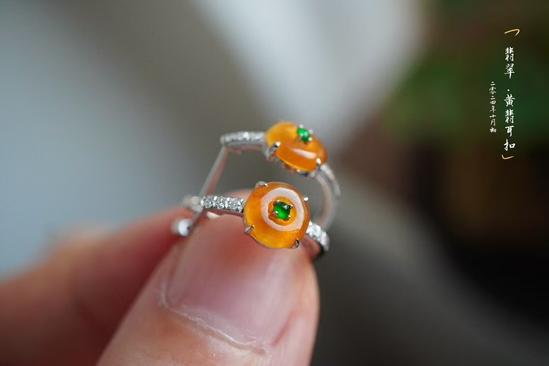 • 翡翠冰黃平安扣耳扣 (6.2mm直徑),天然翡翠A玉, 緬甸玉, Jade, Jadeite