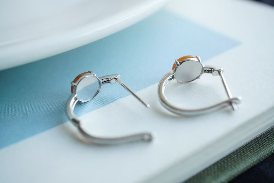 119822 翡翠冰黃平安扣耳扣 (6.2mm直徑)