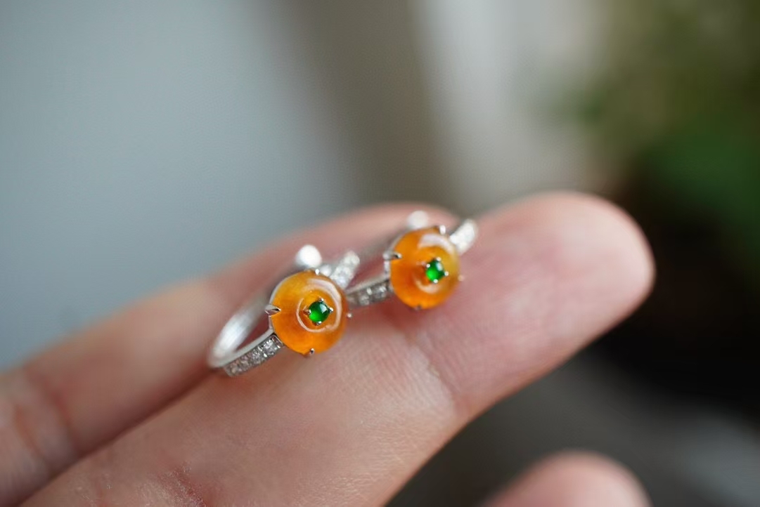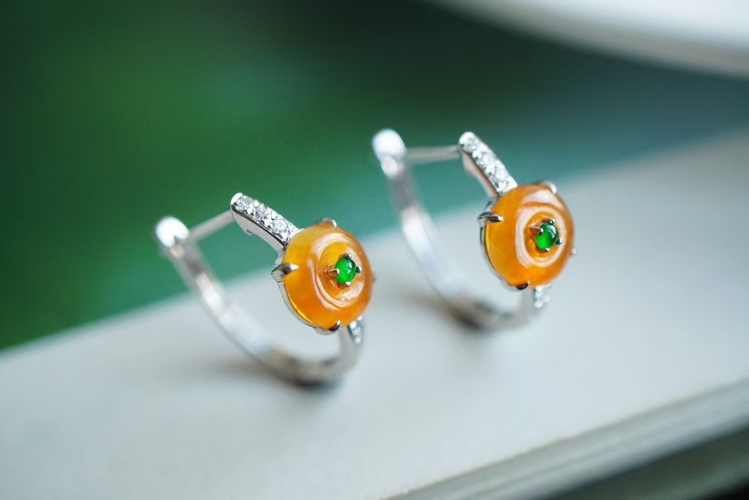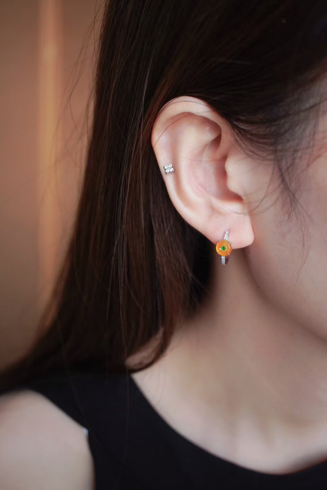 天然翡翠A玉,種色一流,色澤明媚,起熒光,18K白金鑽石鑲嵌,有種有色的小精品!上耳氣質點綴,秋冬季節戴它很有味道