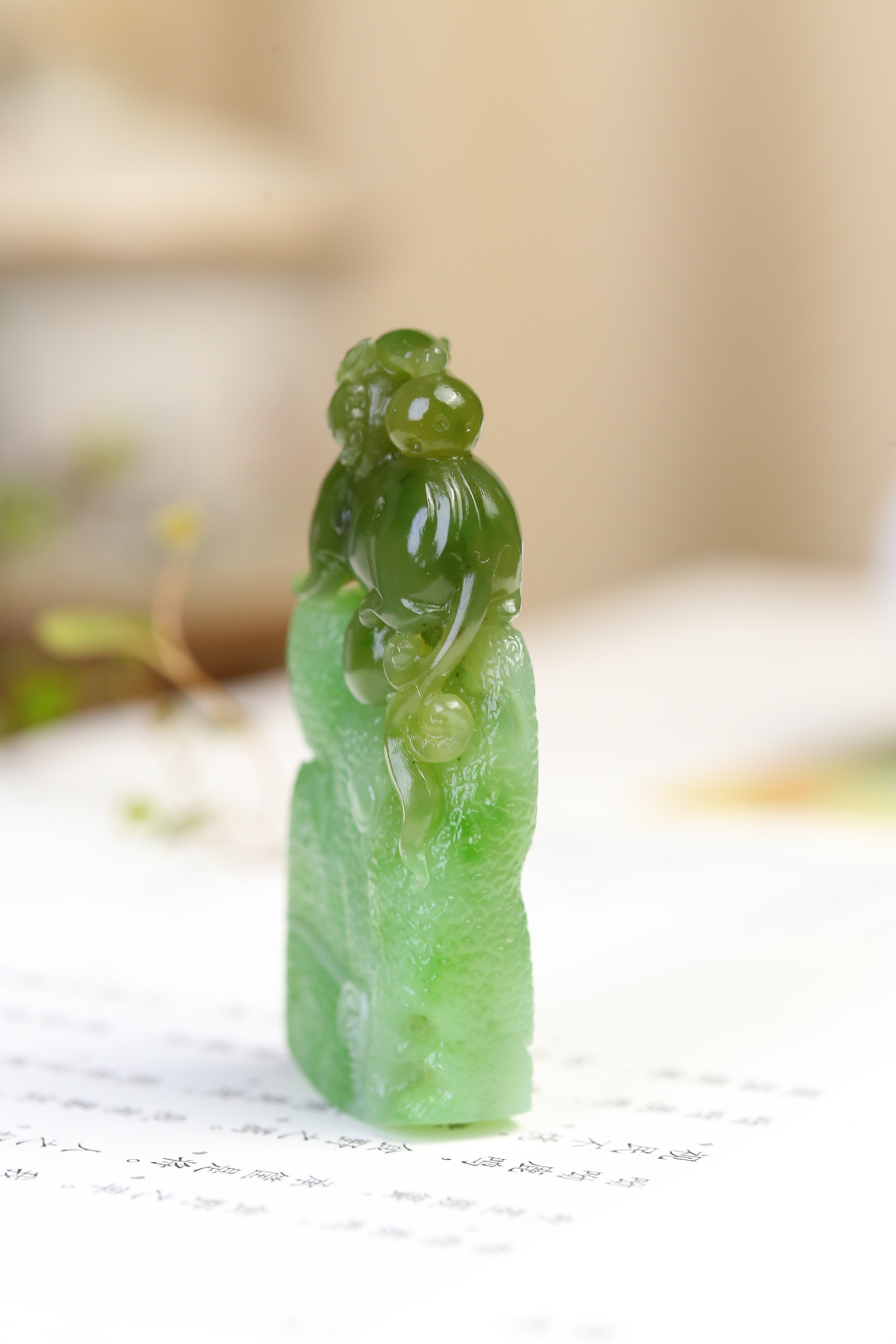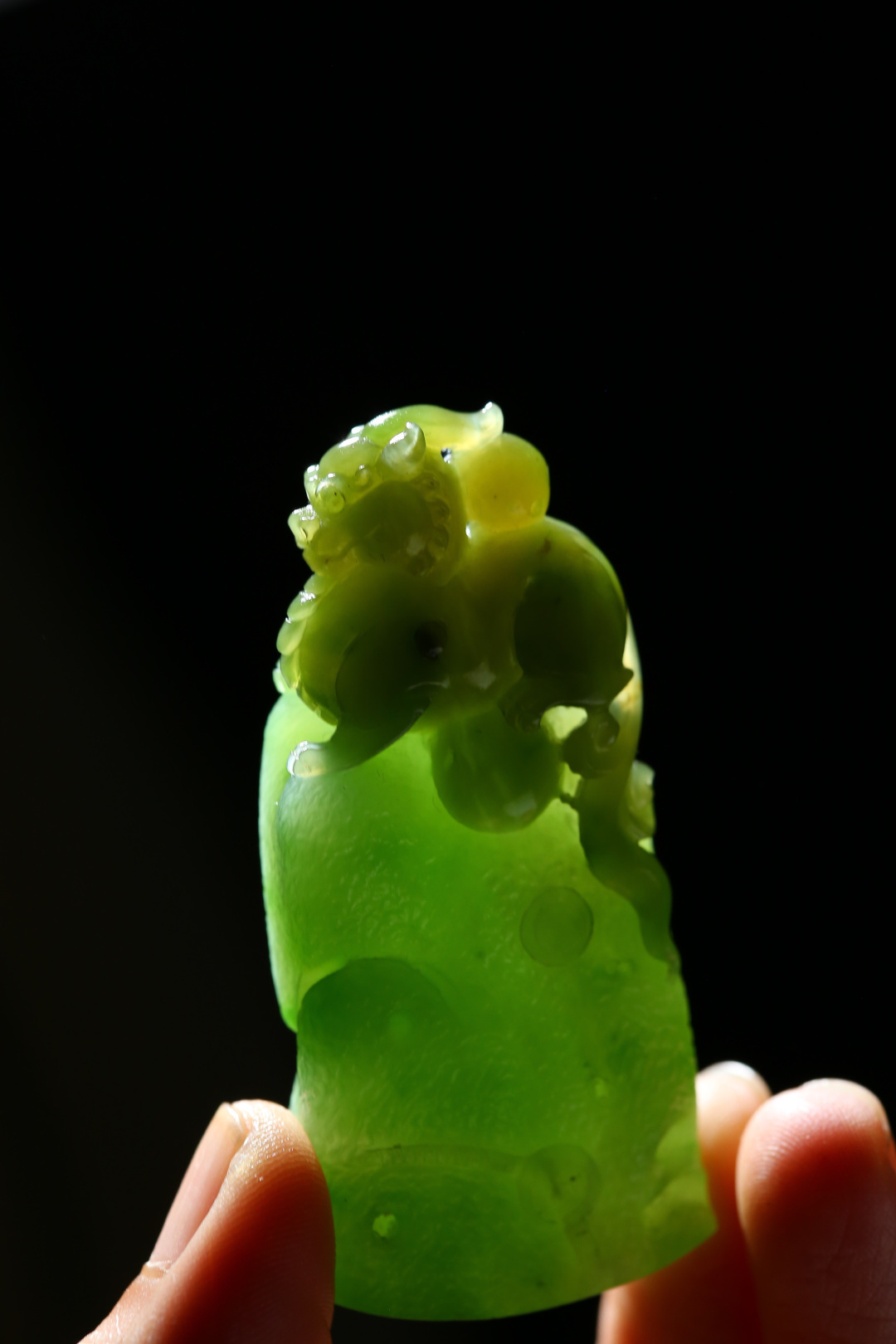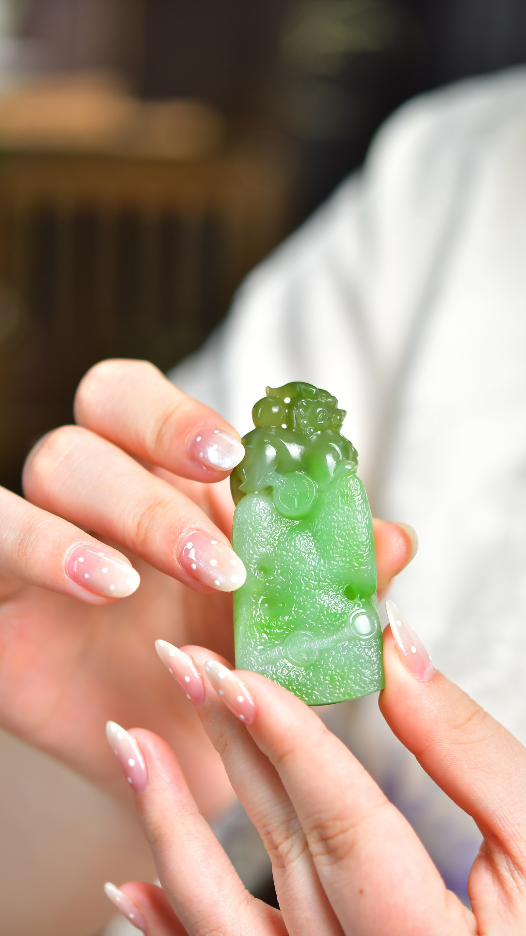 • 和田玉碧玉麒麟獻瑞掛件,天然和田玉軟玉