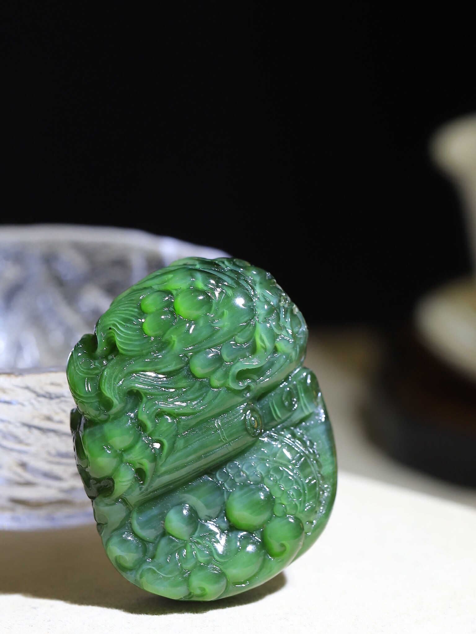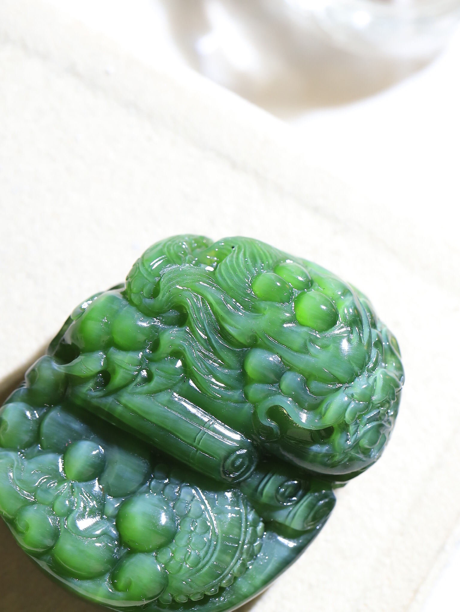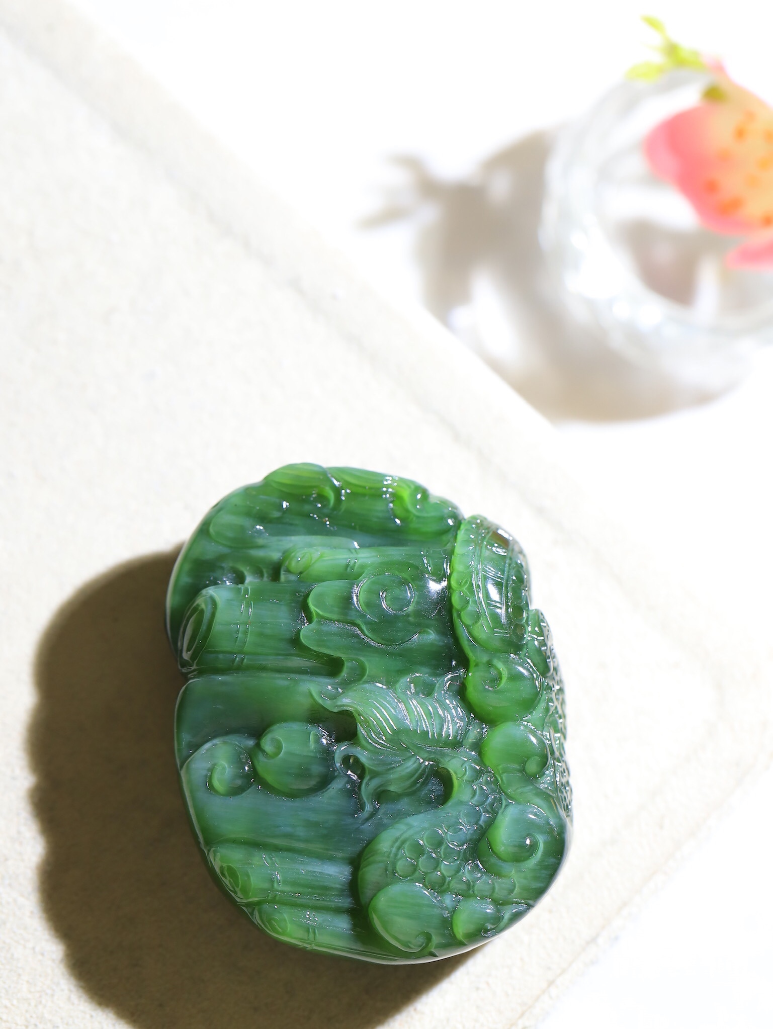 - 天然玉石在不同光線下,會呈現出不同的顏色變化;