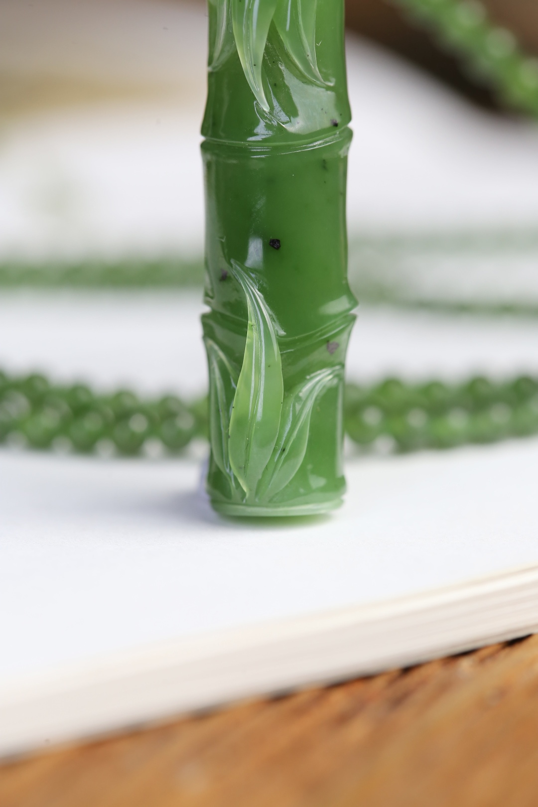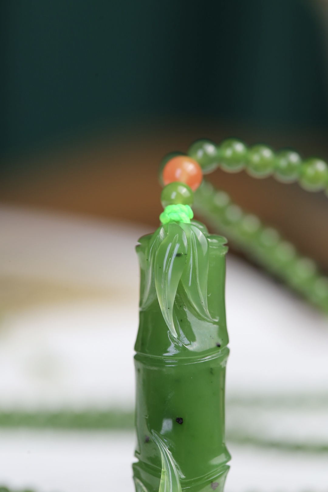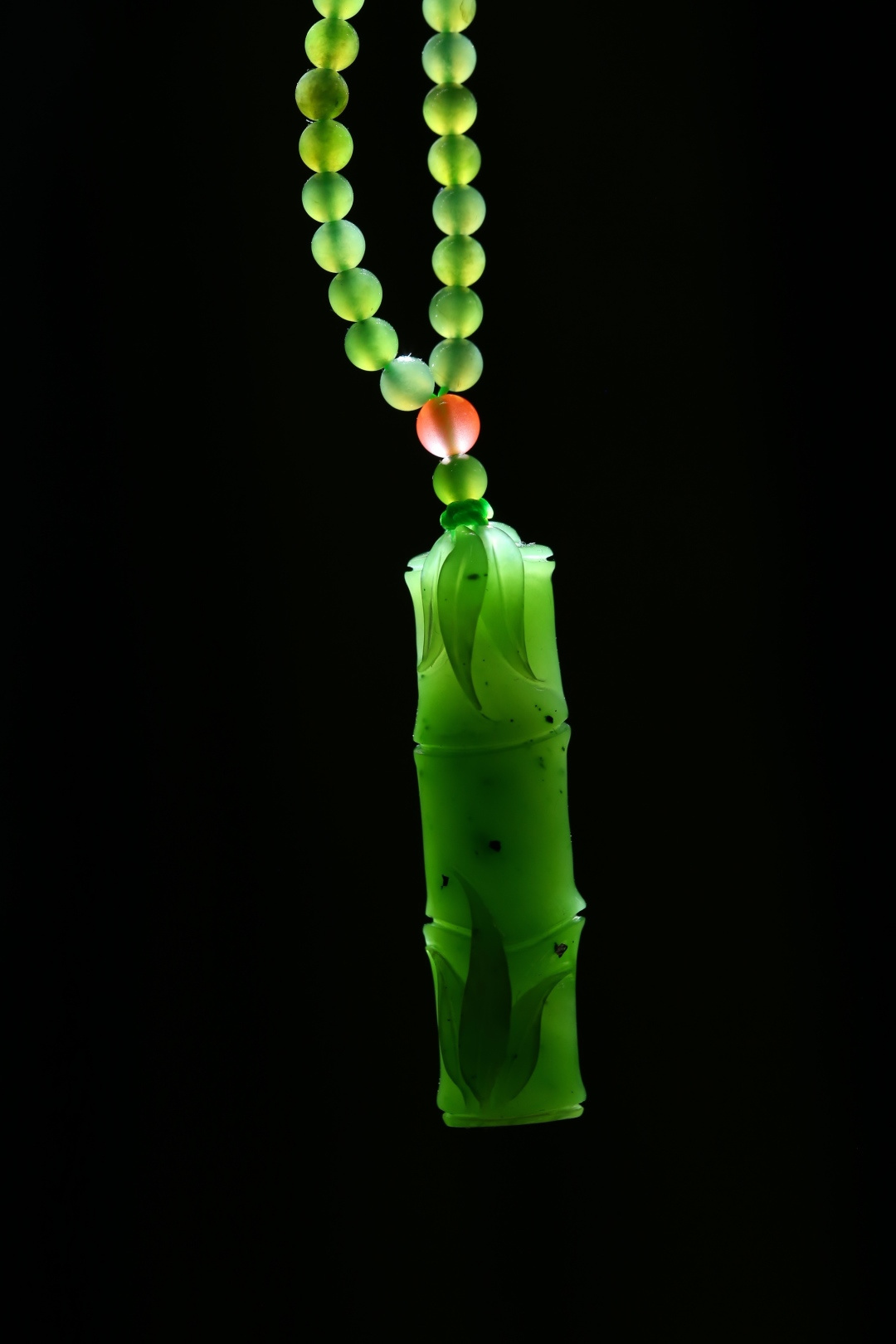 天然和田玉碧玉掛件,玉質細膩油潤,做工細致精美,精琢竹節,亭亭玉立,婆娑有致,陰刻節痕,秀葉纖細,鮮脆欲滴,底部緣生竹笋,整器簡潔大方。玉佑有緣人平安健康。