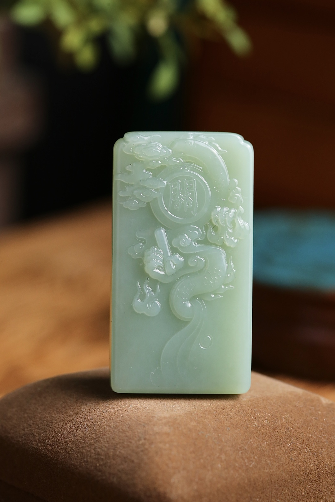 天然和田玉碧玉鴨蛋青掛件,玉質細膩油潤,雕工栩栩如生。精雕觀音神態靜謐慈祥,神龍神態威嚴,盡顯瀟灑大氣。