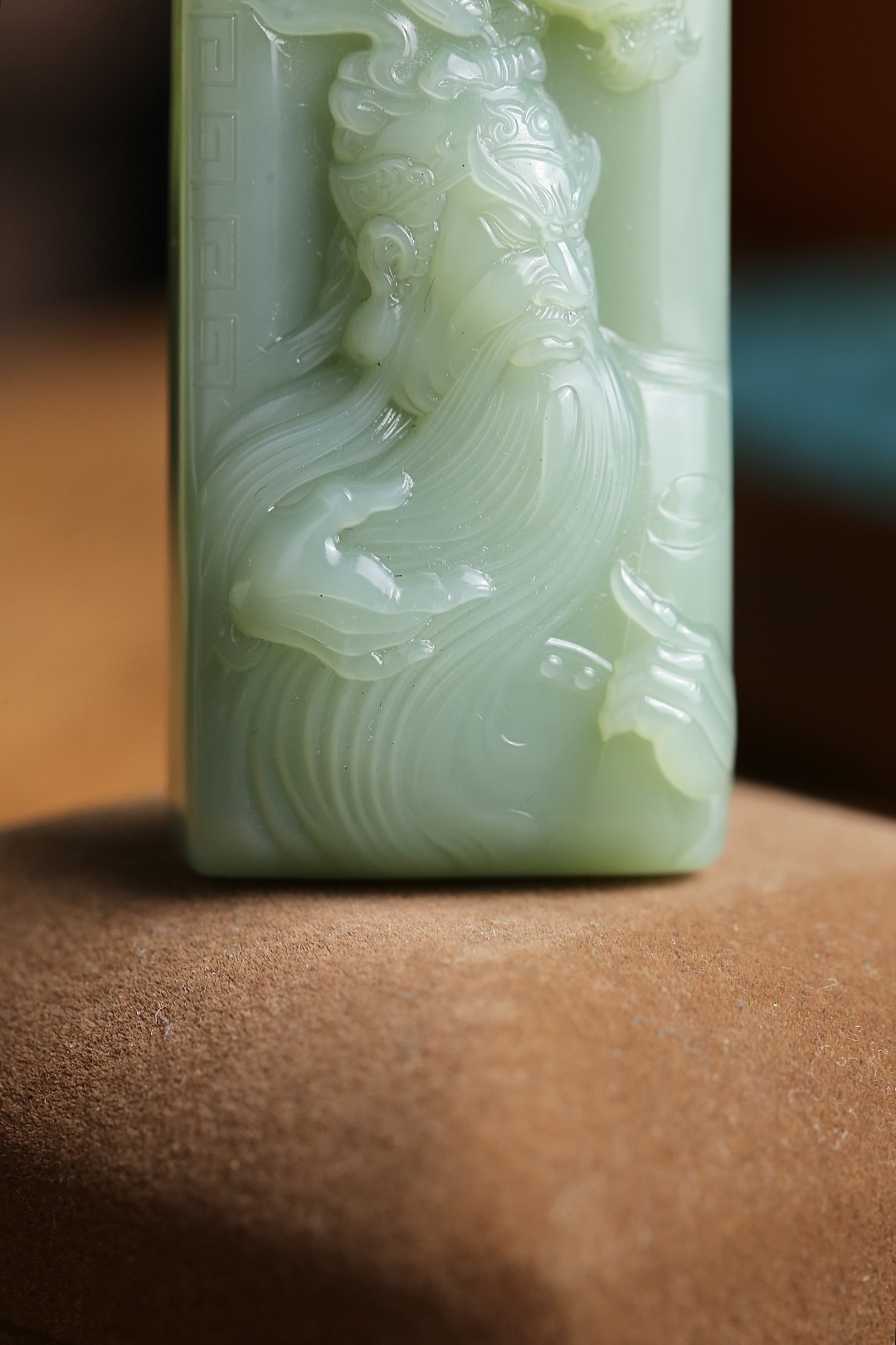 • 和田玉碧玉御龍關公掛件,天然和田玉軟玉