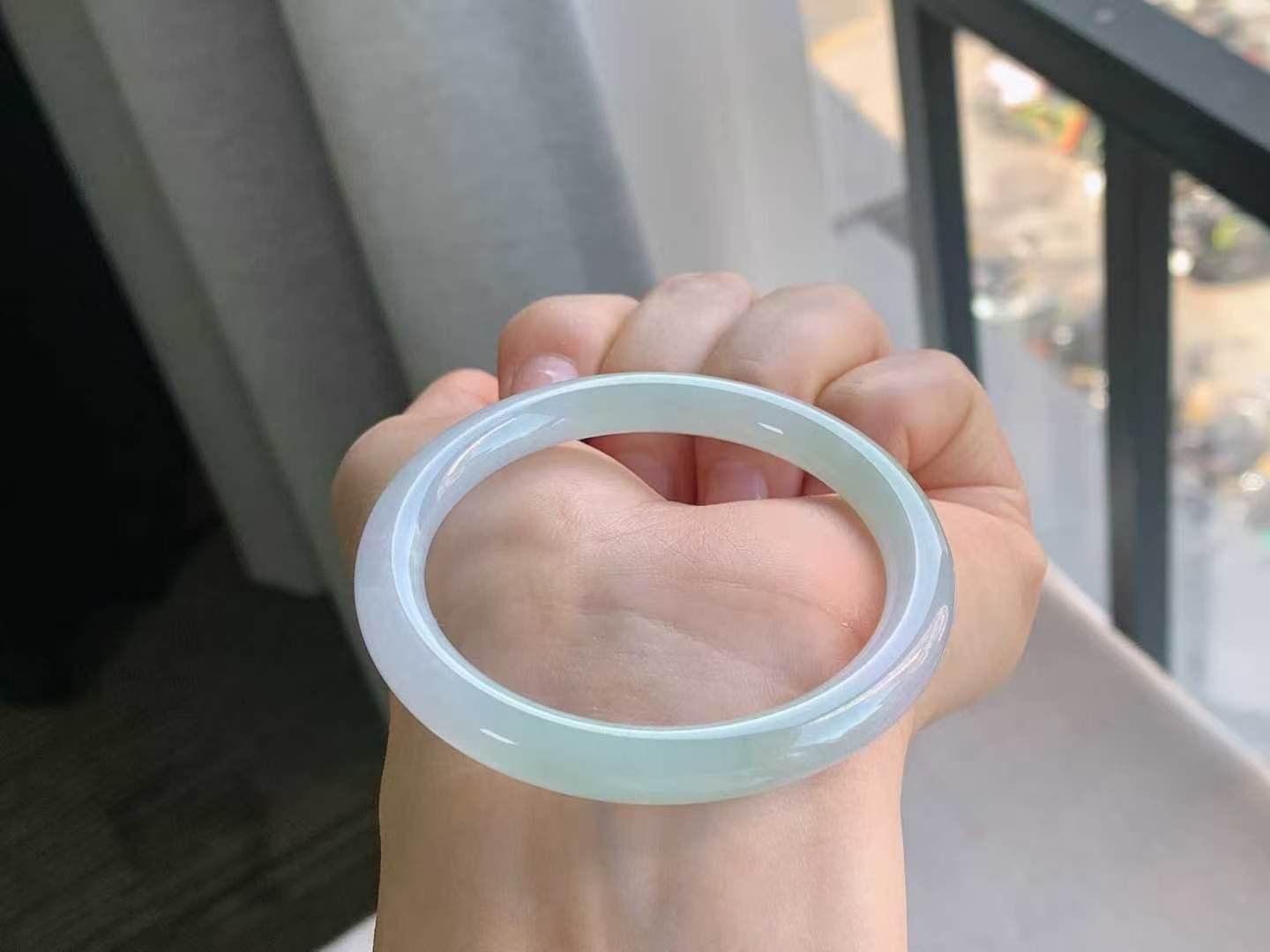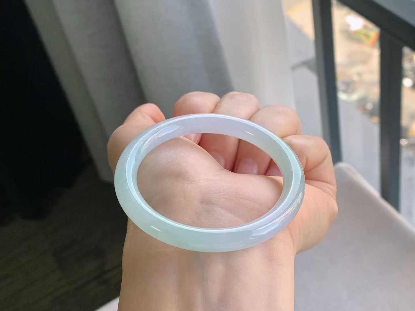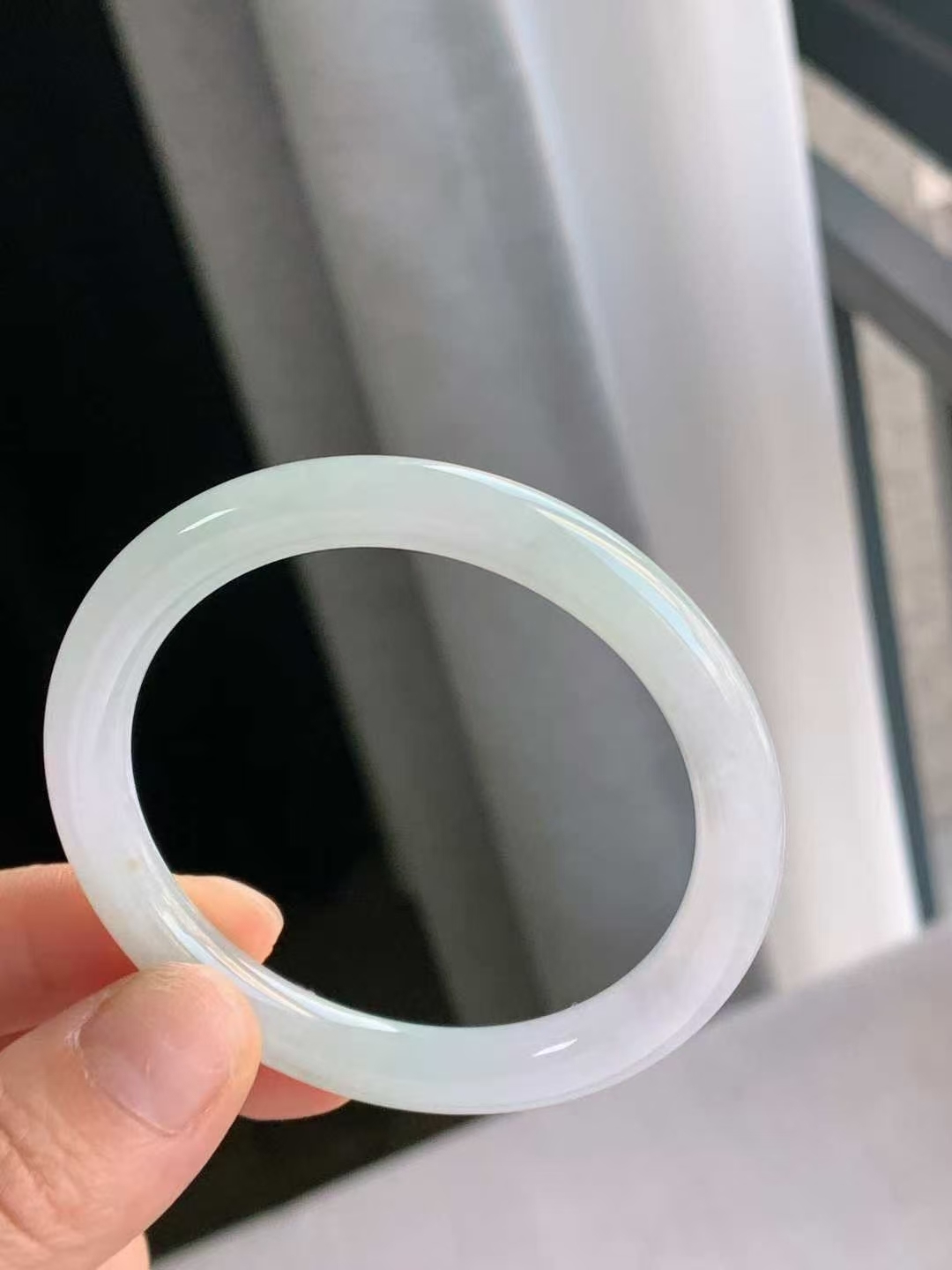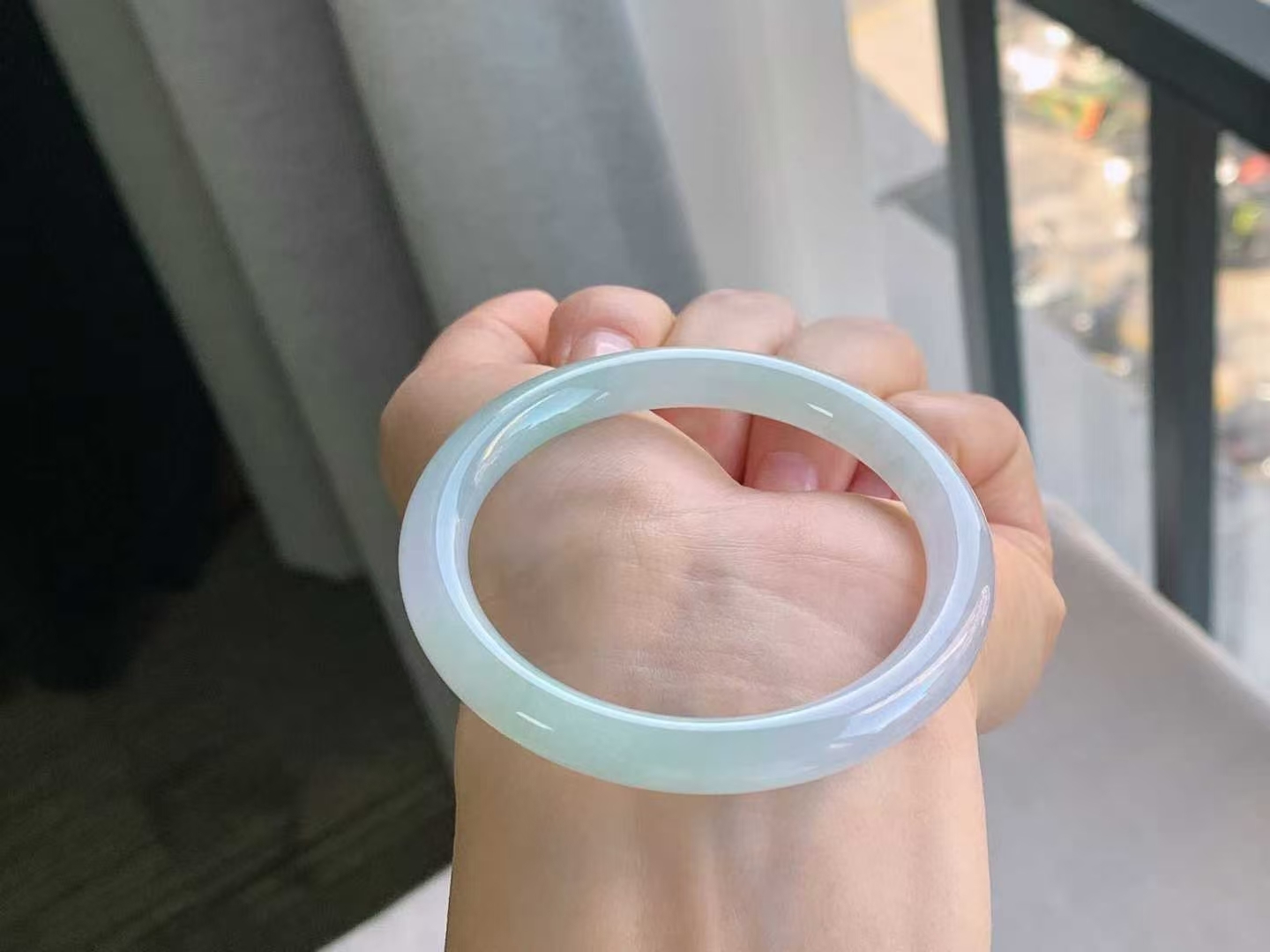 1215639 53mm翡翠淡春彩圓條手鐲 (52-54)