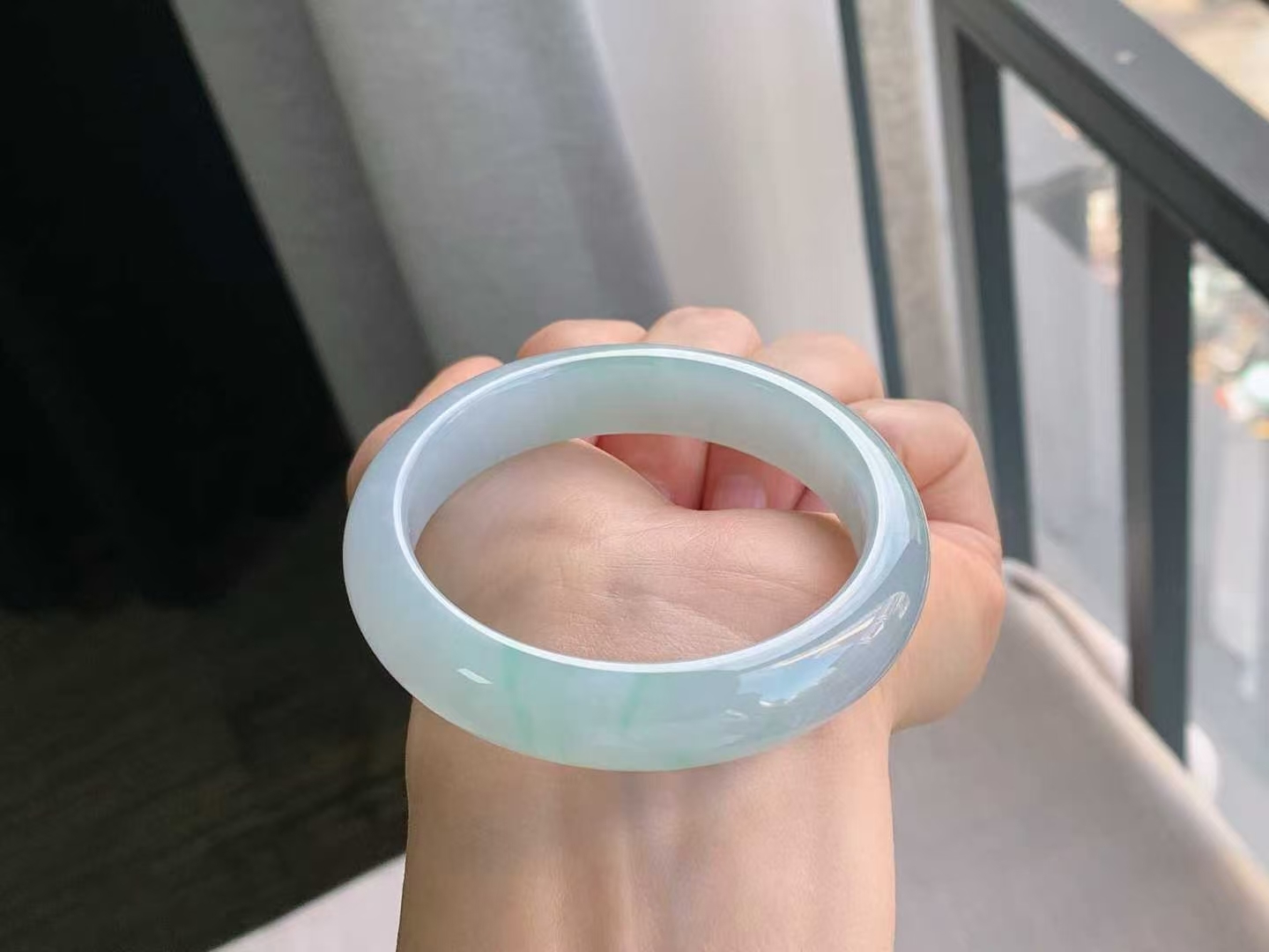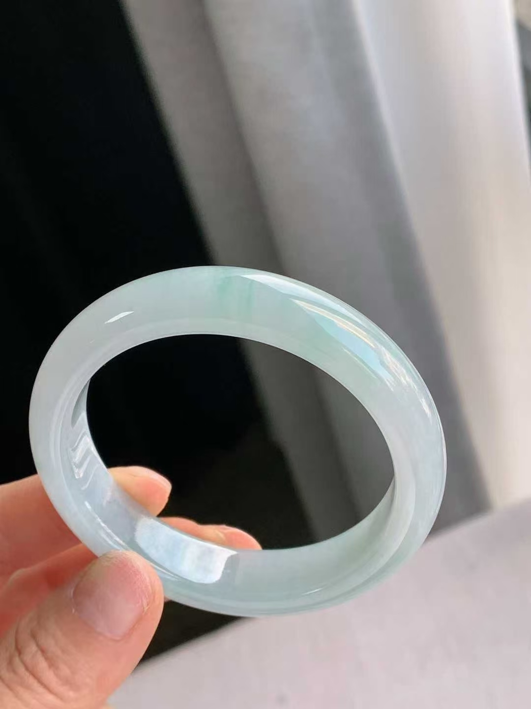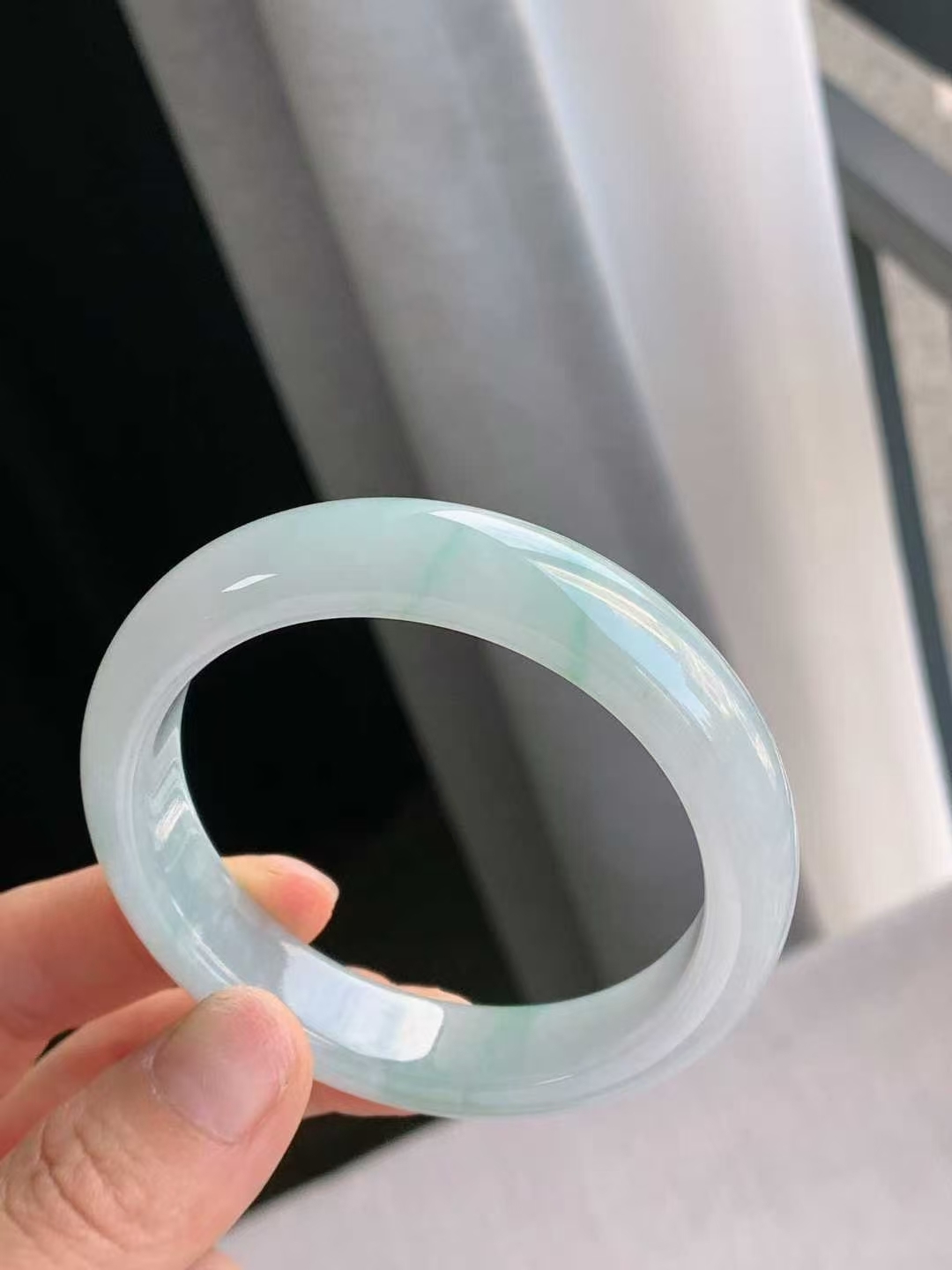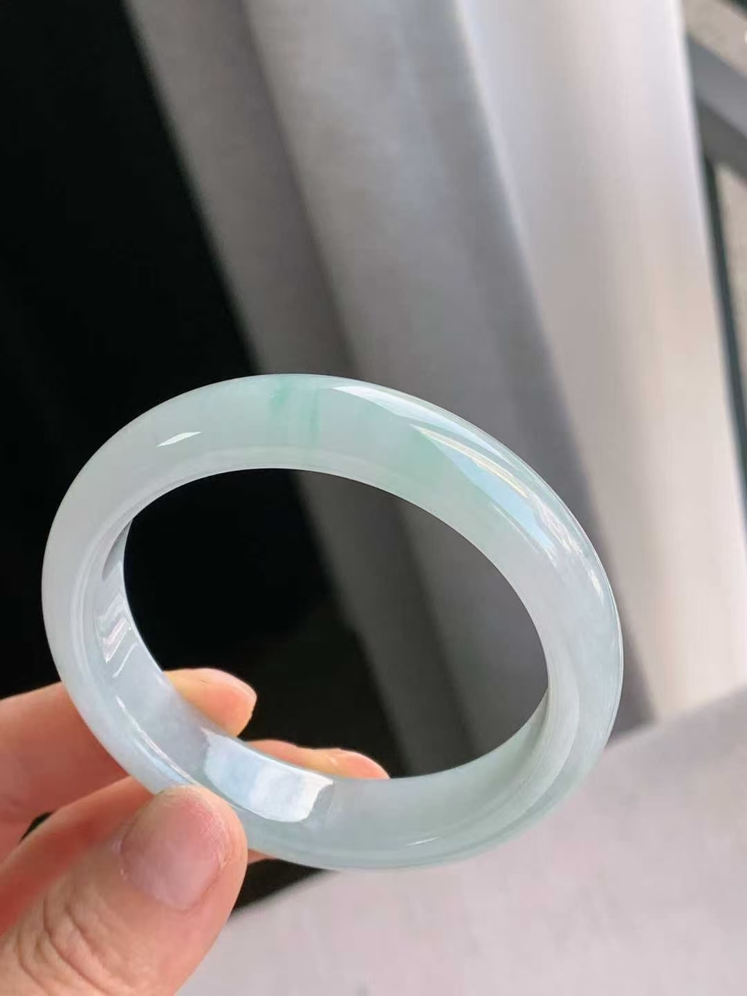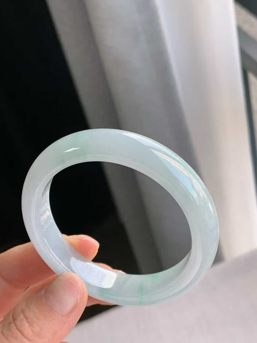 • 翡翠飄綠正圈手鐲,天然翡翠A玉, 緬甸玉, Jade, Jadeite