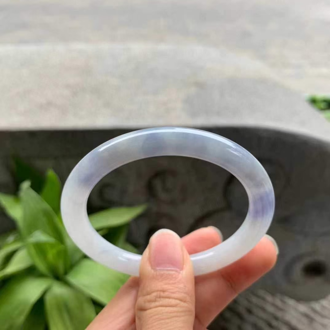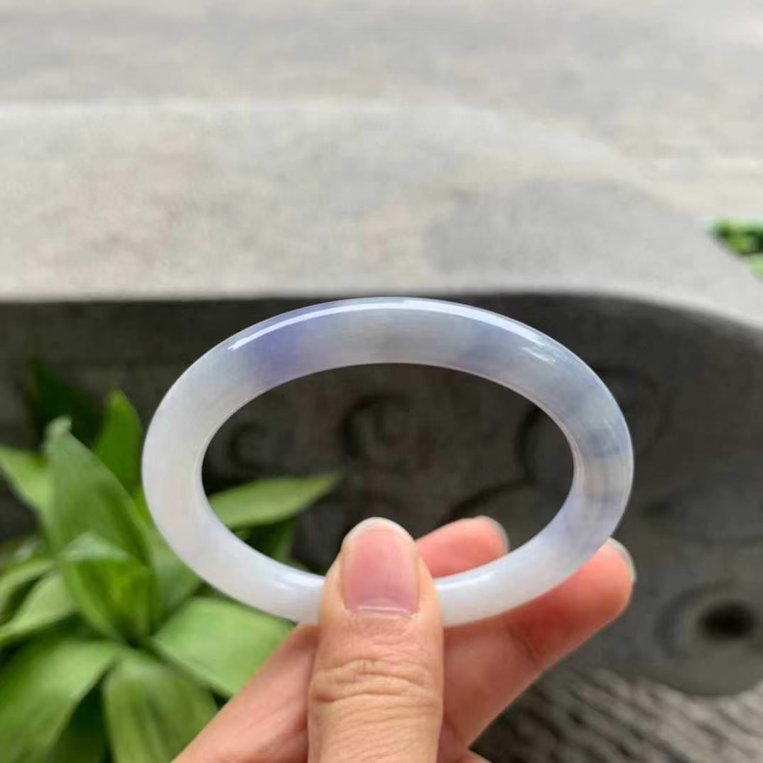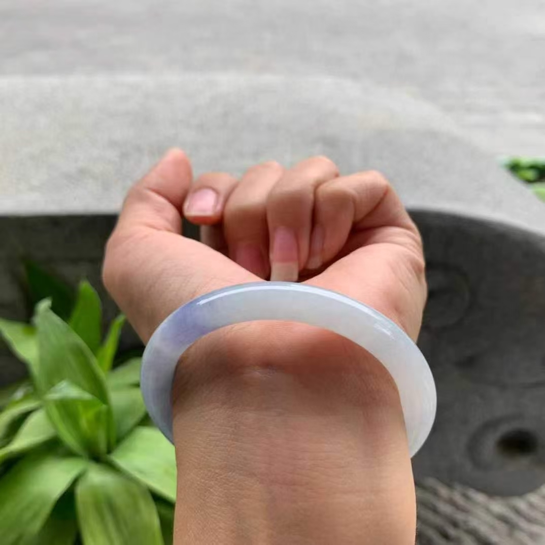 • 翡翠冰藍紫圓條手鐲,天然翡翠A玉, 緬甸玉, Jade, Jadeite