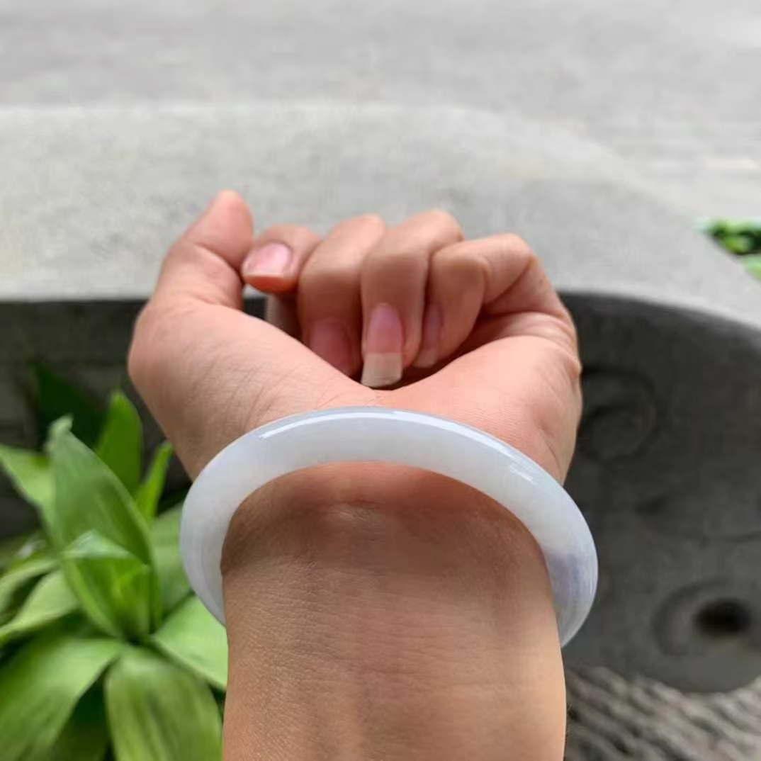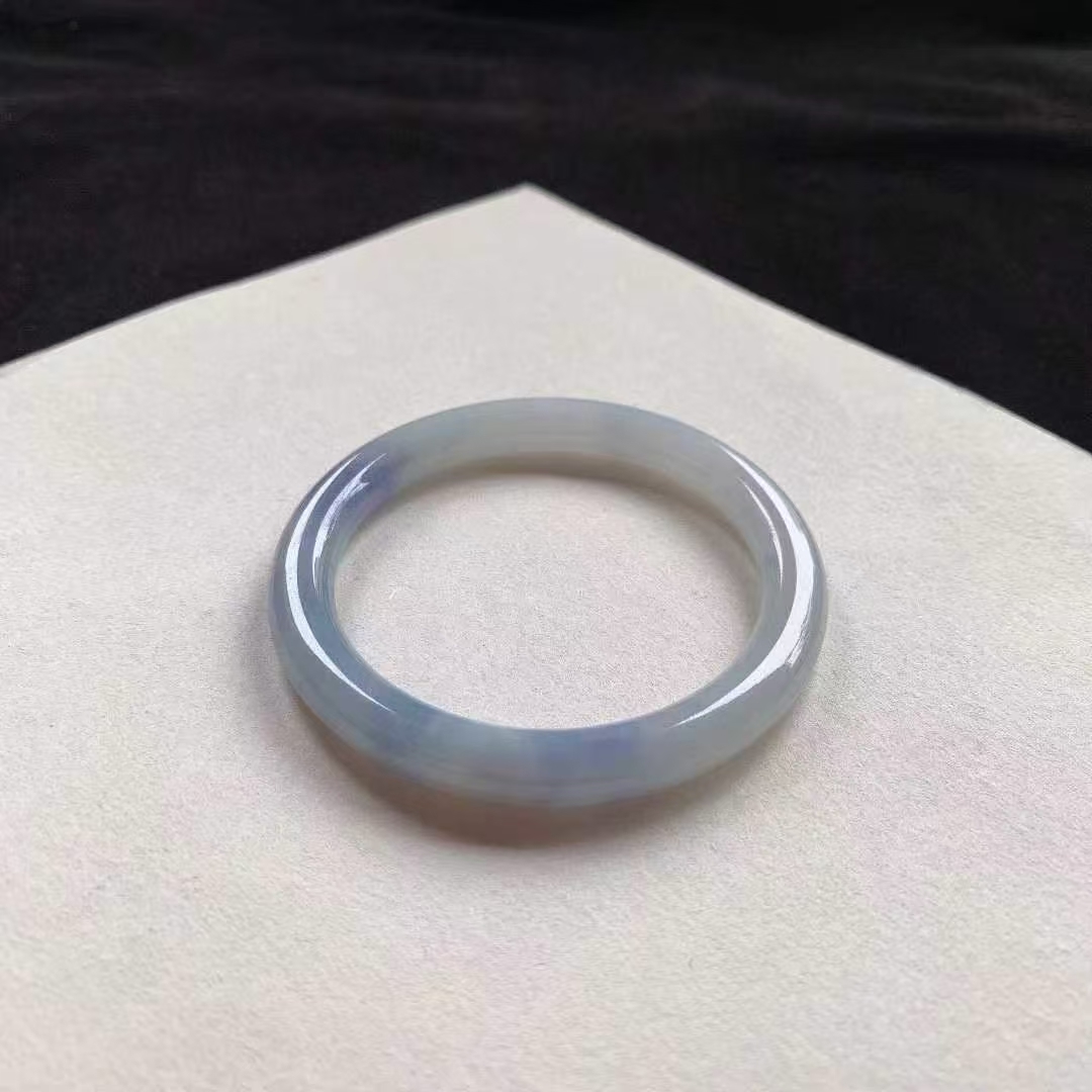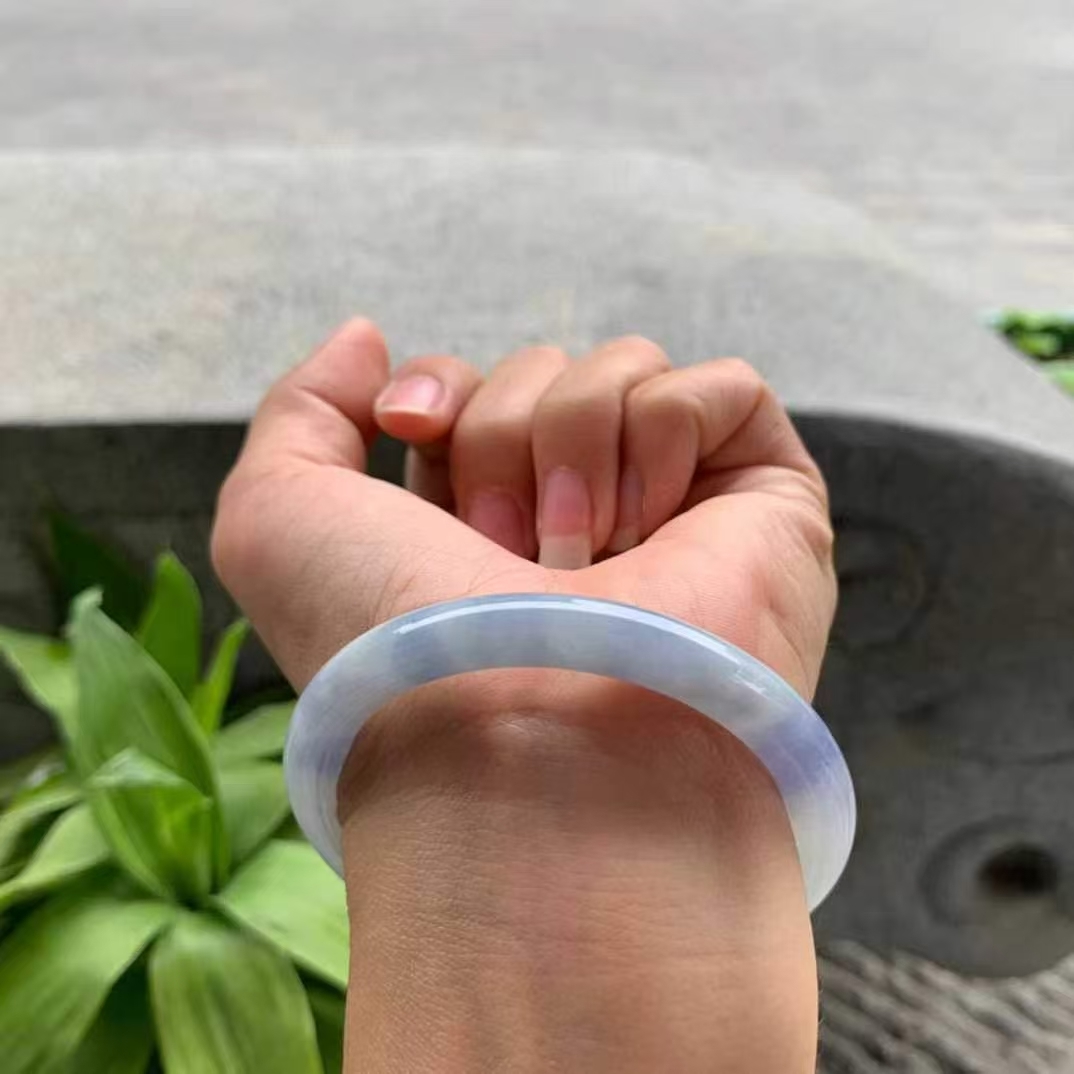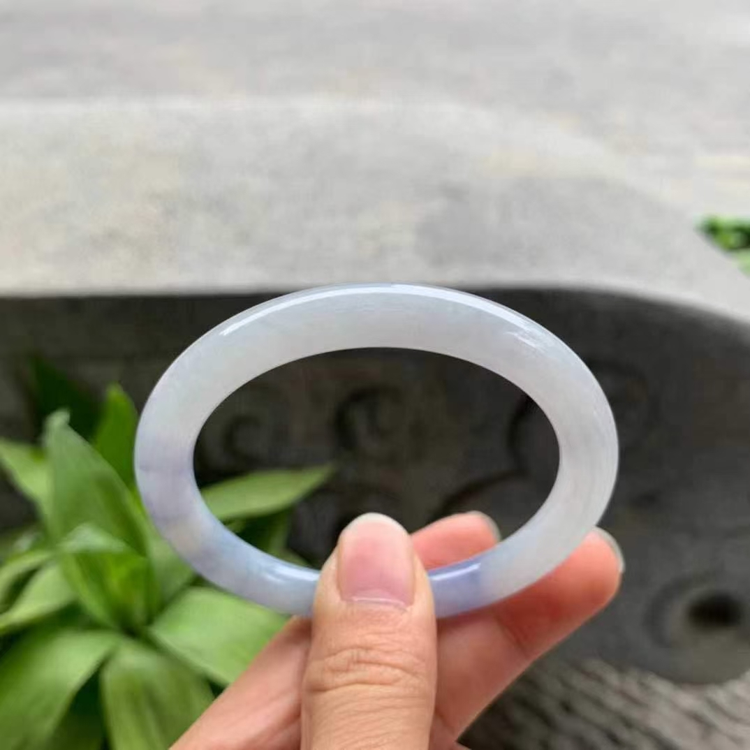 • 翡翠冰藍紫圓條手鐲,天然翡翠A玉, 緬甸玉, Jade, Jadeite