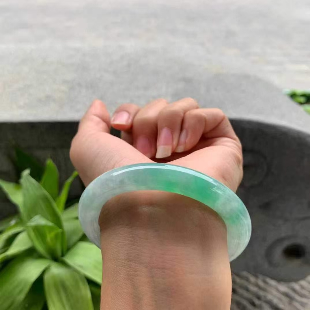 1215646 55.2mm翡翠陽綠圓條手鐲