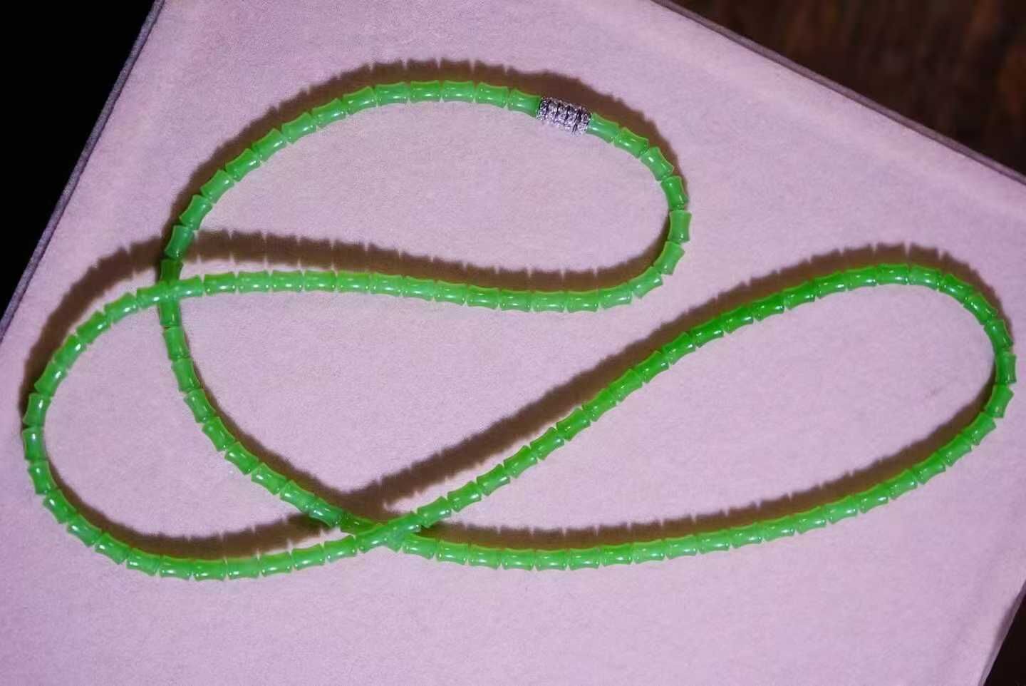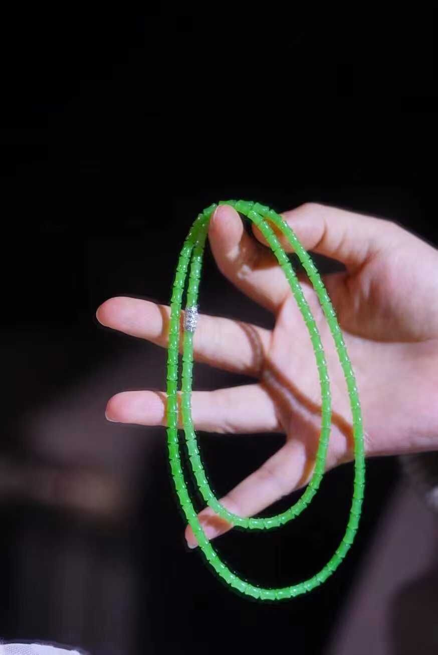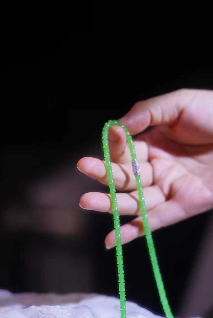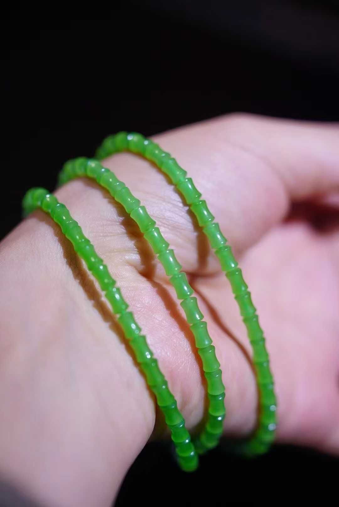 "竹林許清風" 天然和田玉,碧玉蘋果綠竹節珠串,竹是十分惹人愛的元素,清新果綠好似一陣清風吹拂,碧玉蘋果綠竹節形態珠,細膩完美!十分靈動,有仙氣!值得你收入珠寶箱。