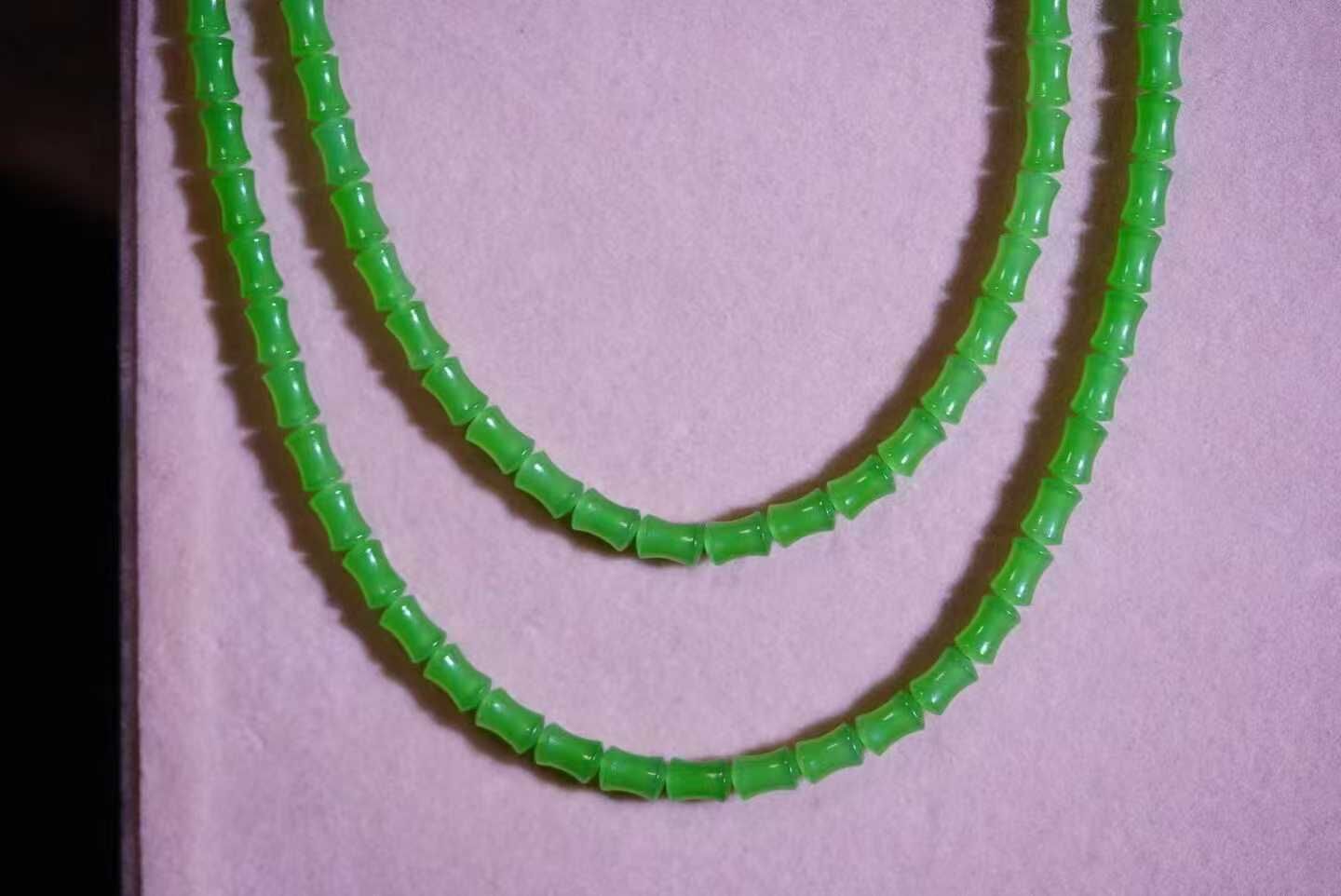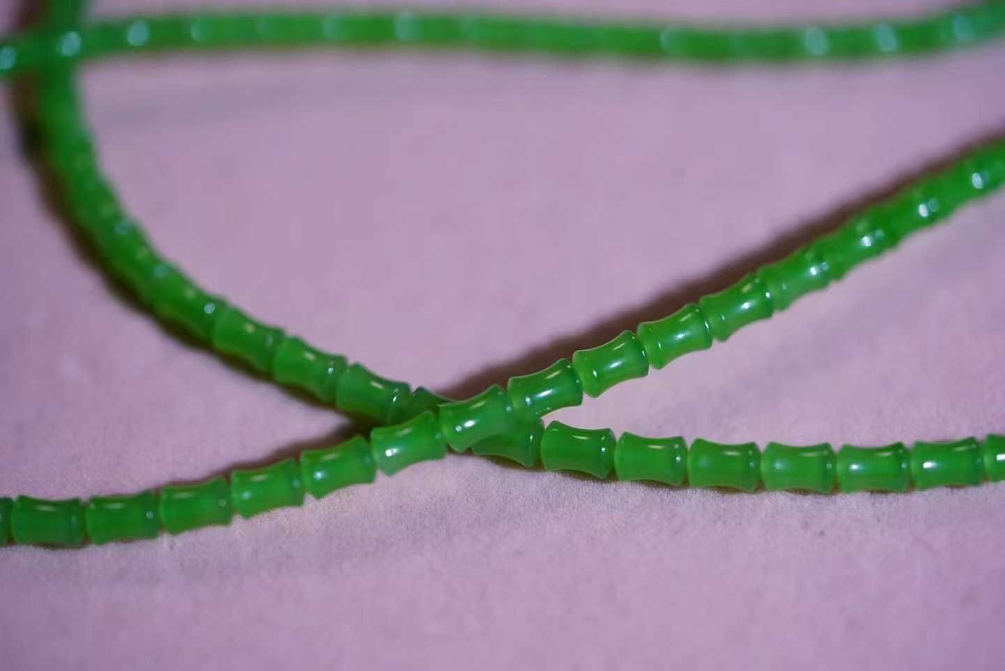 • 和田玉碧玉蘋果綠竹節珠串 (5.7mm直徑),天然和田玉軟玉