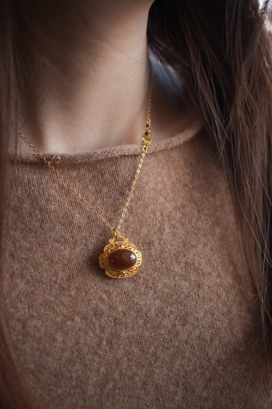 1218454 和田玉純糖料“平安如意鎖”吊墜