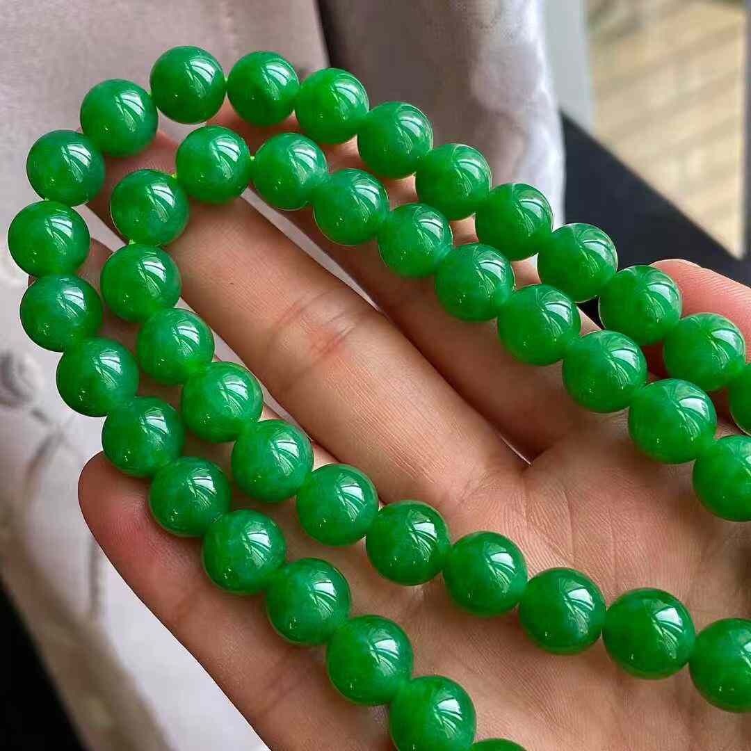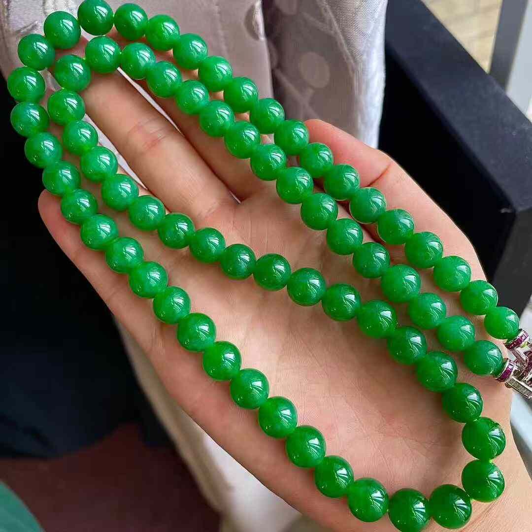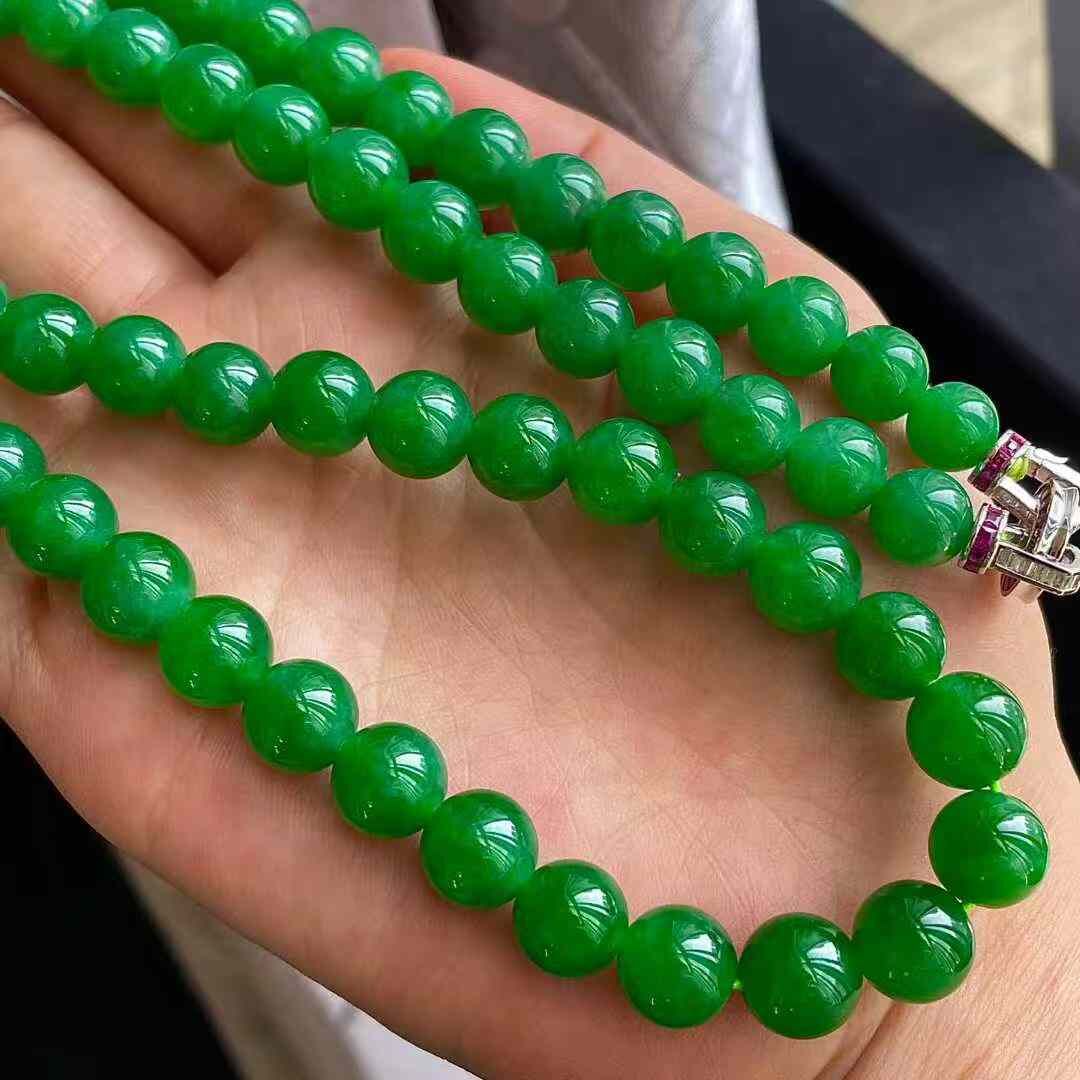 12185511 翡翠冰種辣綠珠鏈 (8.2-9.4mm直徑)