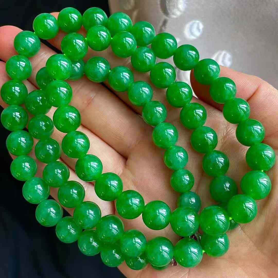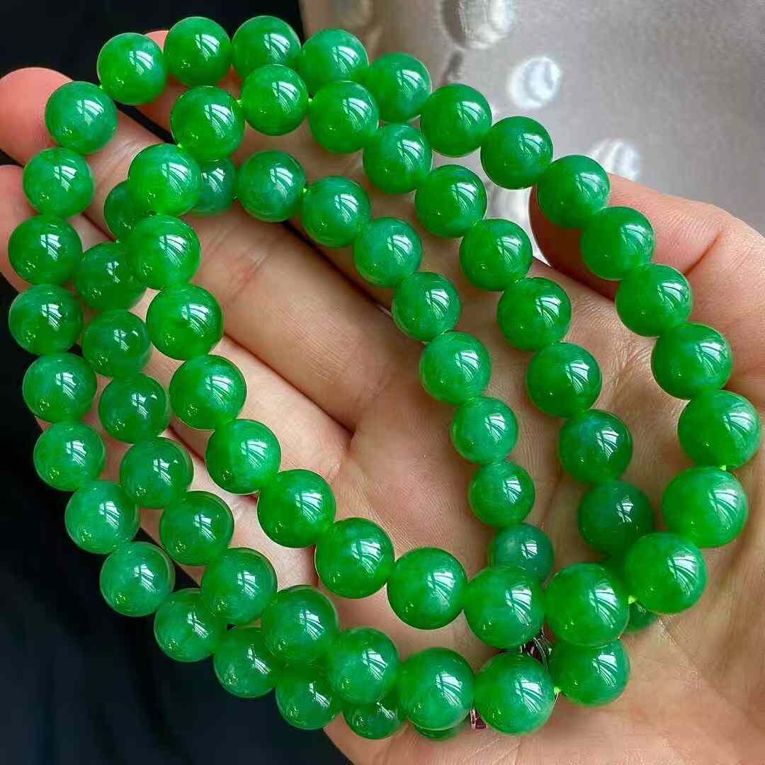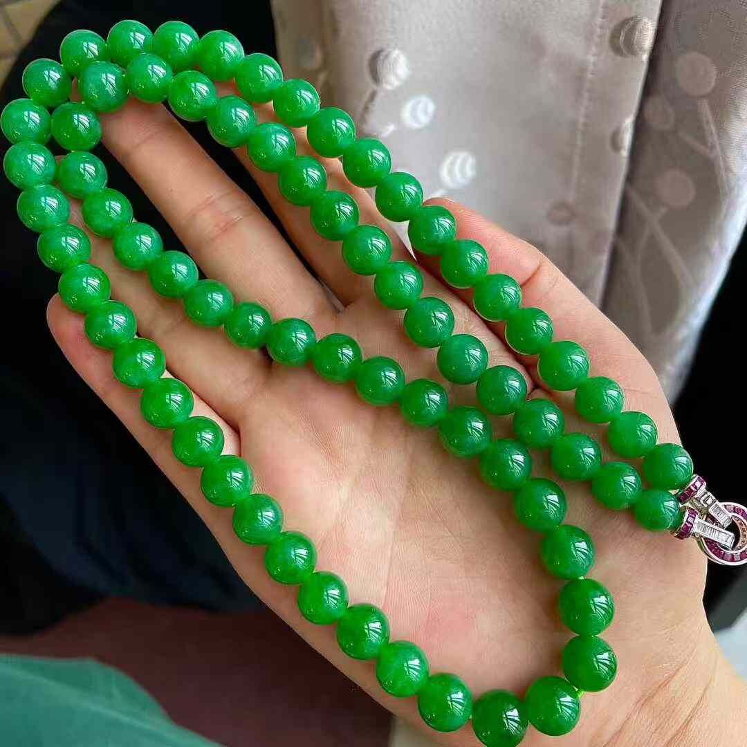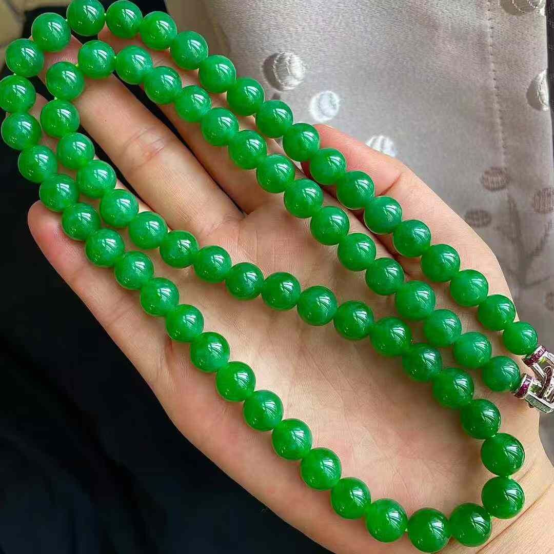 12185511 翡翠冰種辣綠珠鏈 (8.2-9.4mm直徑)
