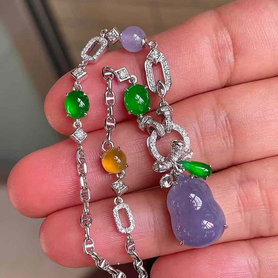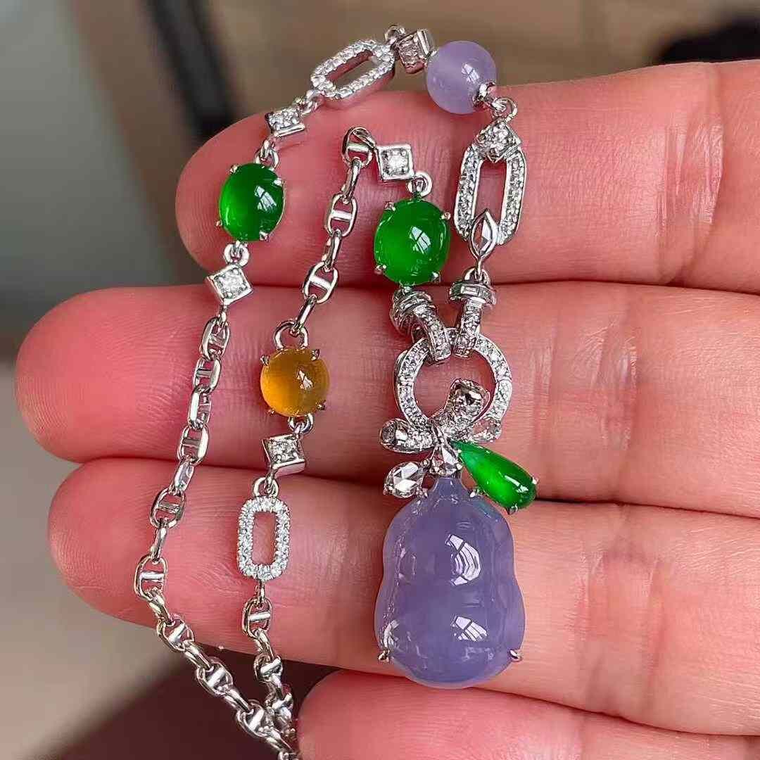 • 翡翠冰種紫羅蘭福瓜項鏈,天然翡翠A玉, 緬甸玉, Jade, Jadeite