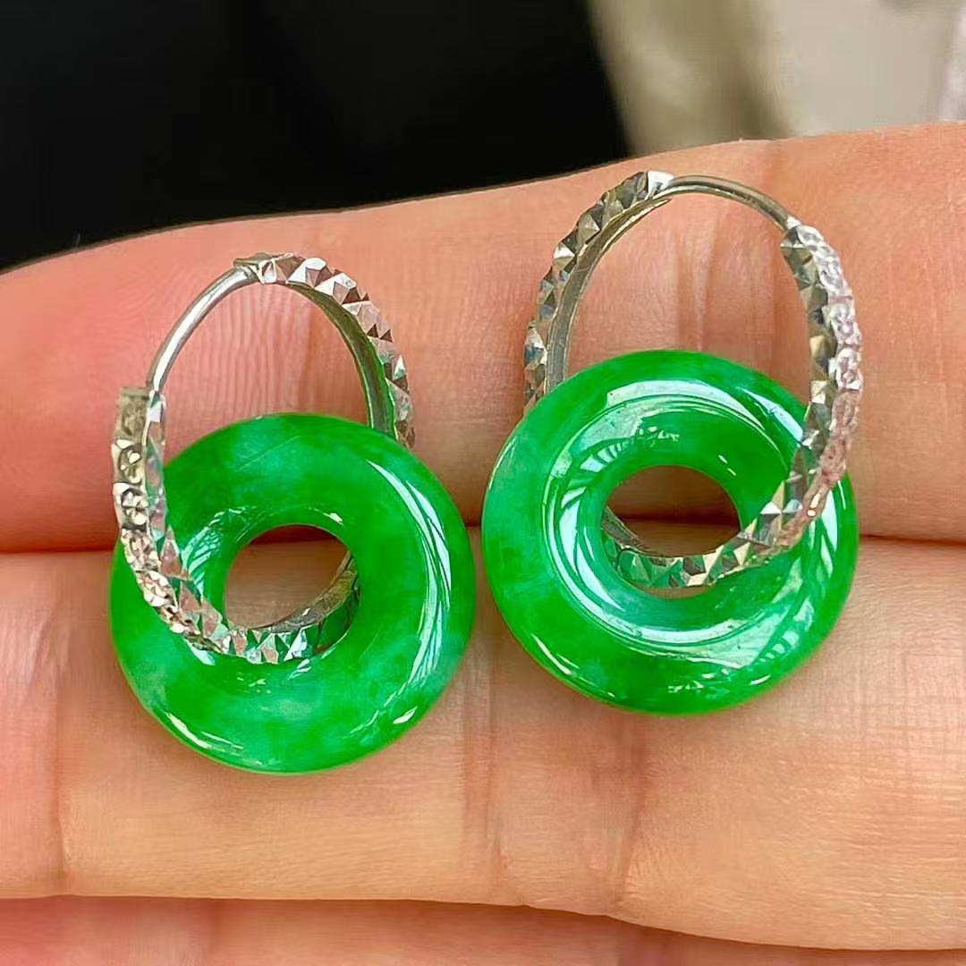 12185518 翡翠冰陽綠平安扣耳墜 (14.8mm直徑)