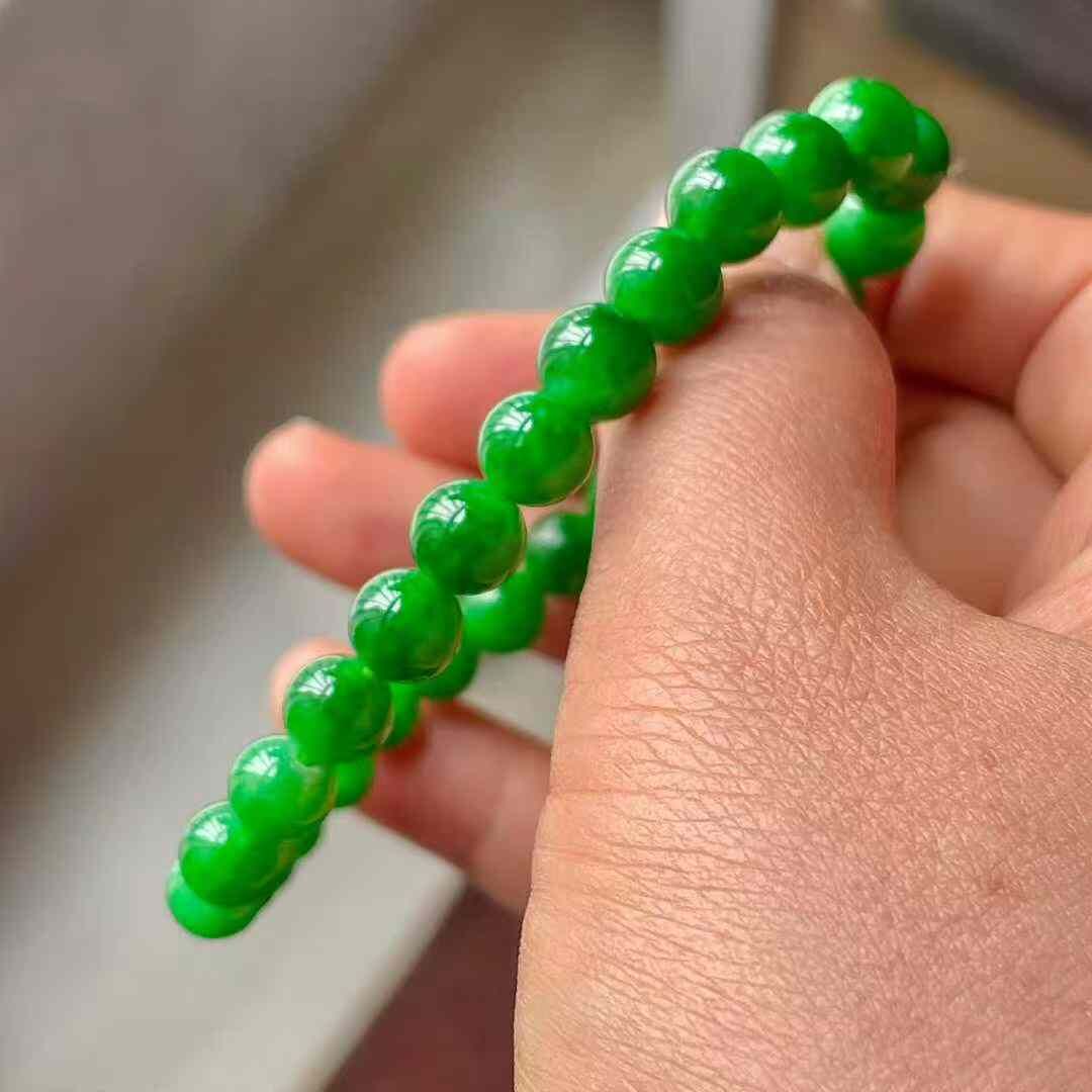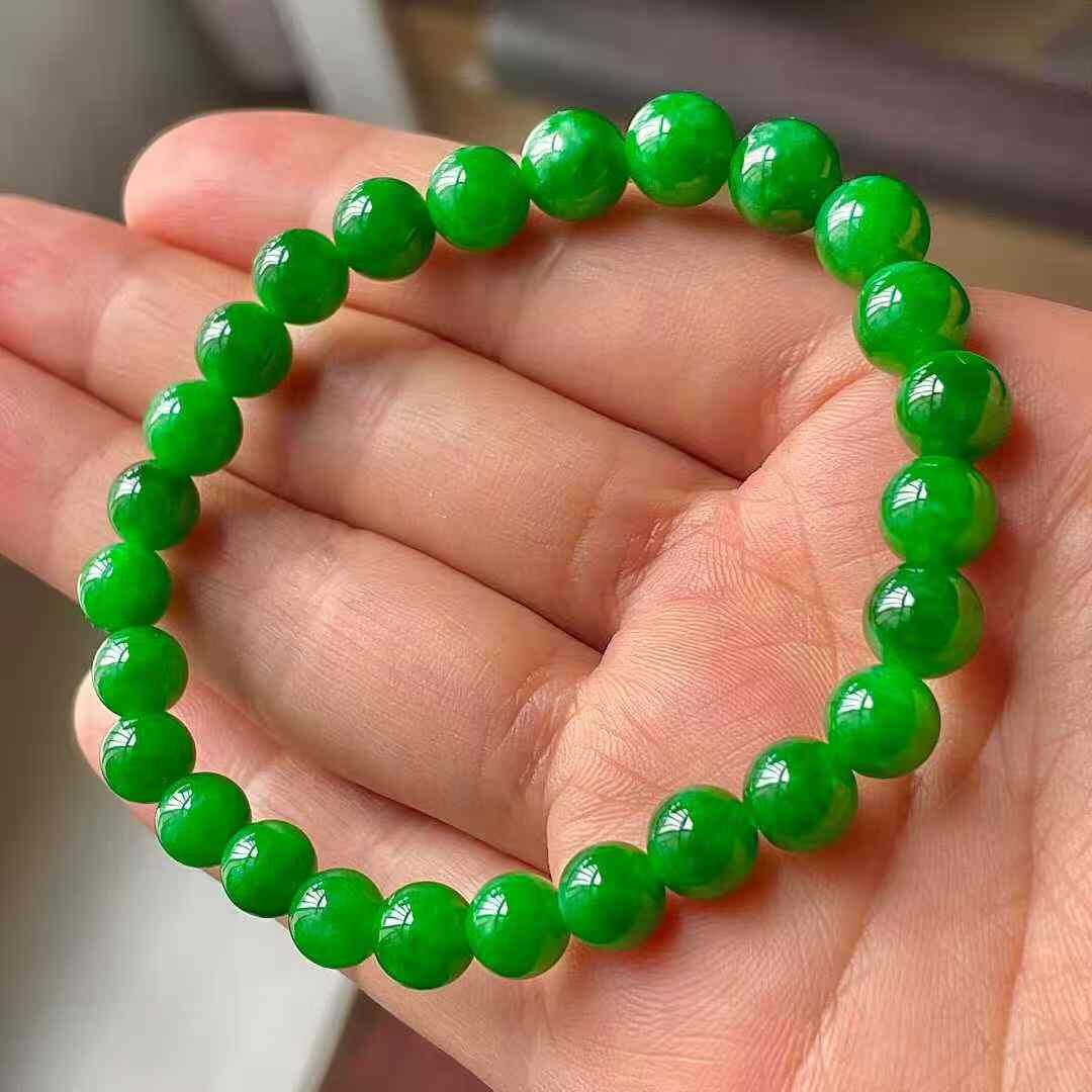 • 翡翠冰辣綠手串 (6.3-7.9mm直徑),天然翡翠A玉, 緬甸玉, Jade, Jadeite