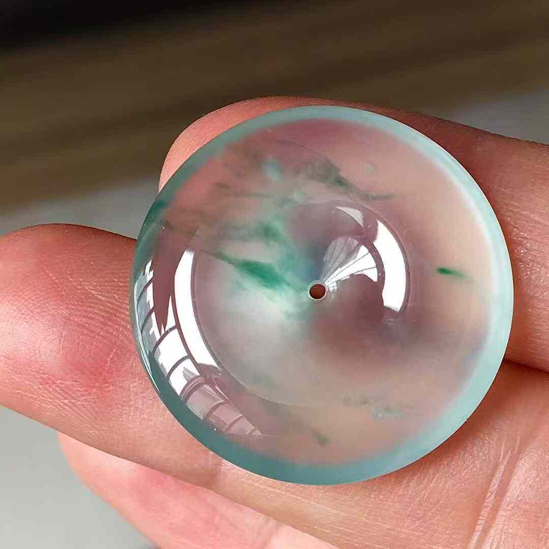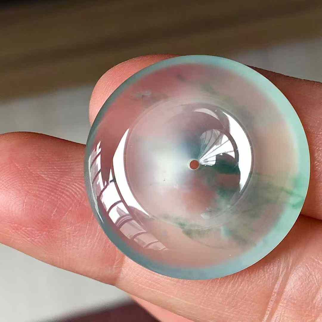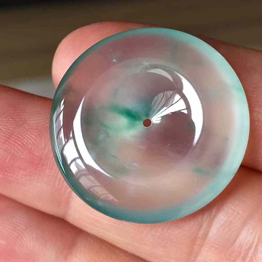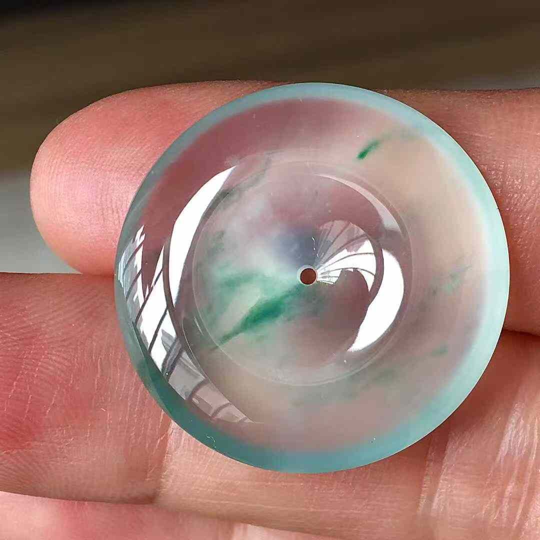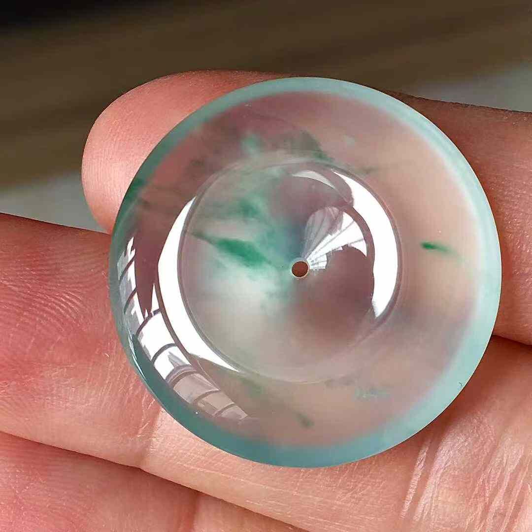 • 翡翠玻璃種飄花平安扣 (23.7mm直徑),天然翡翠A玉, 緬甸玉, Jade, Jadeite