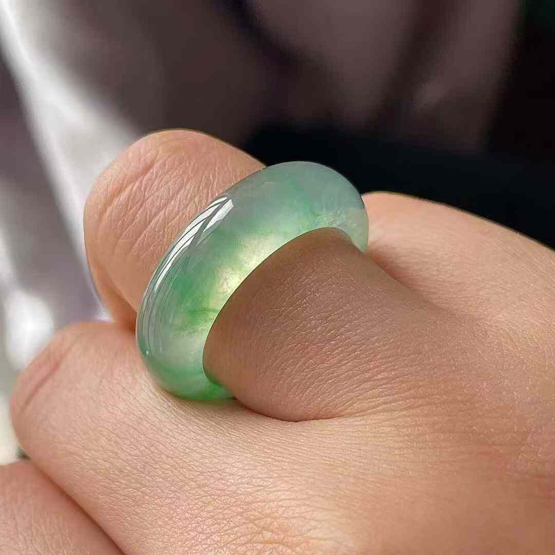 • 翡翠高冰綠花指環套裝,天然翡翠A玉, 緬甸玉, Jade, Jadeite