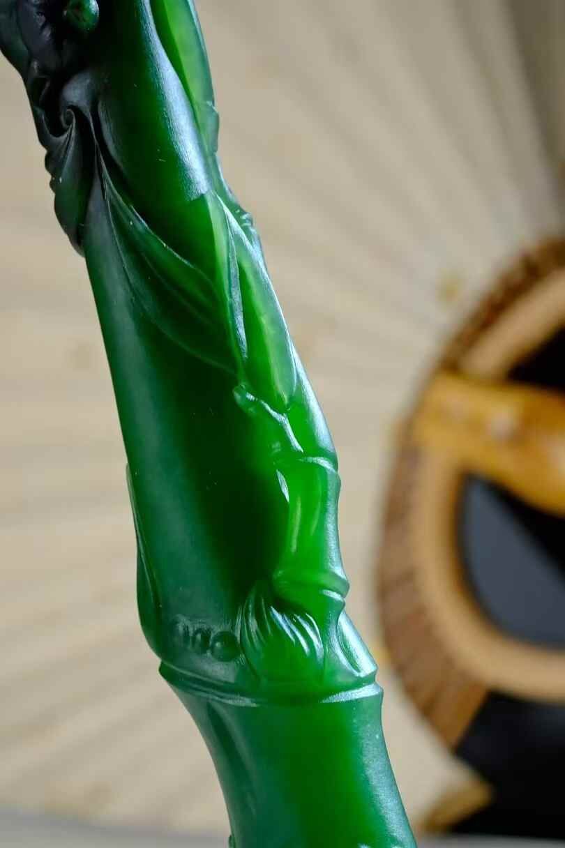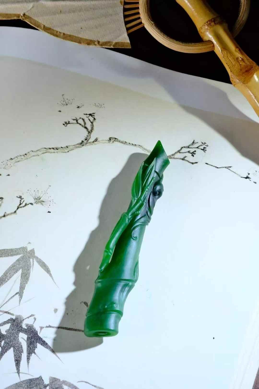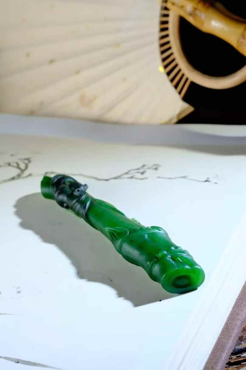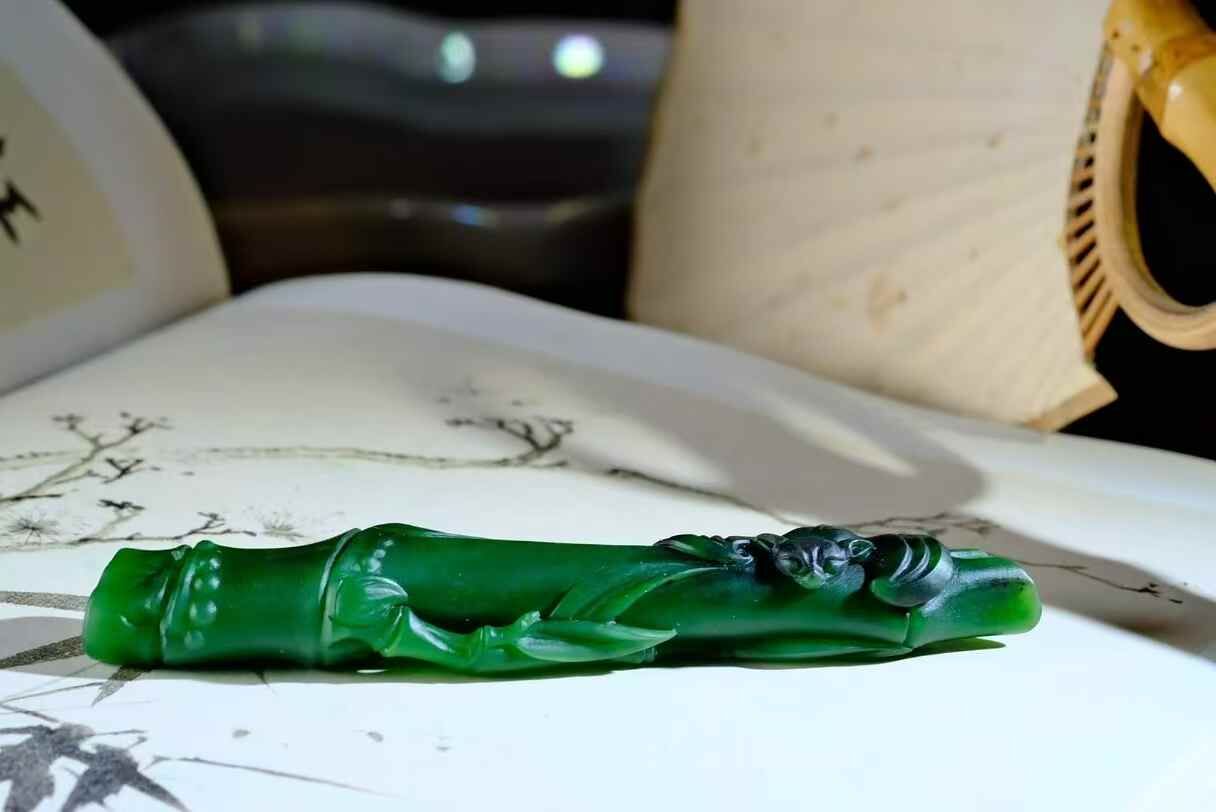天然和田玉,黑皮俏色,玉質油潤細膩,設計制作竹節鎮尺,氣韻天成,疏枝勁葉氣息清靈,風骨儒雅,文房案頭鎮畫,亦可筆擱,把玩陳設文人佳器。