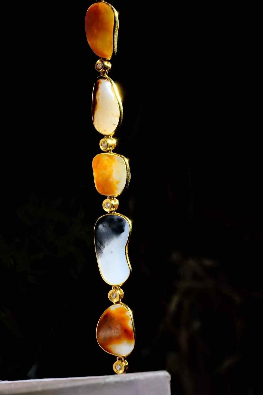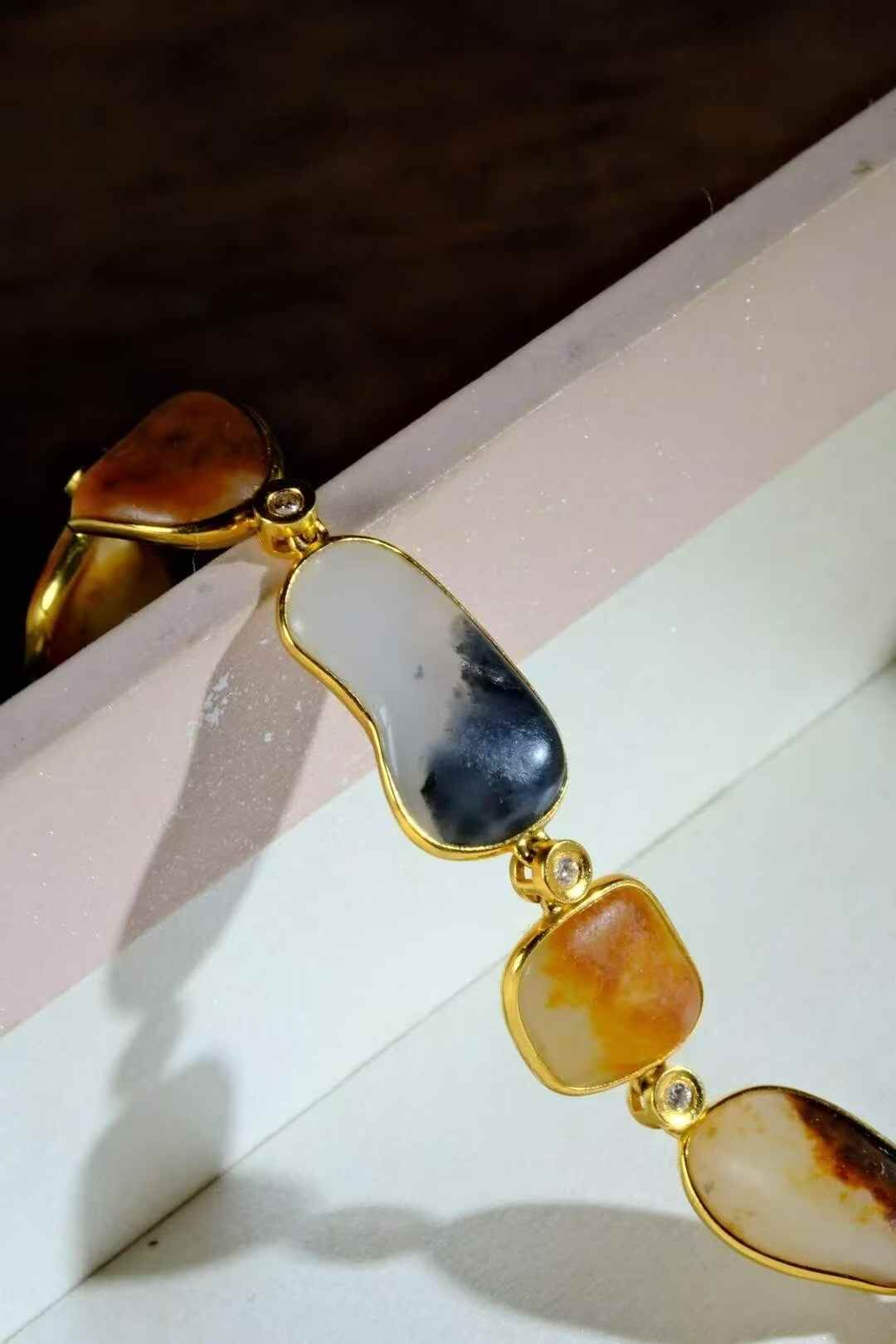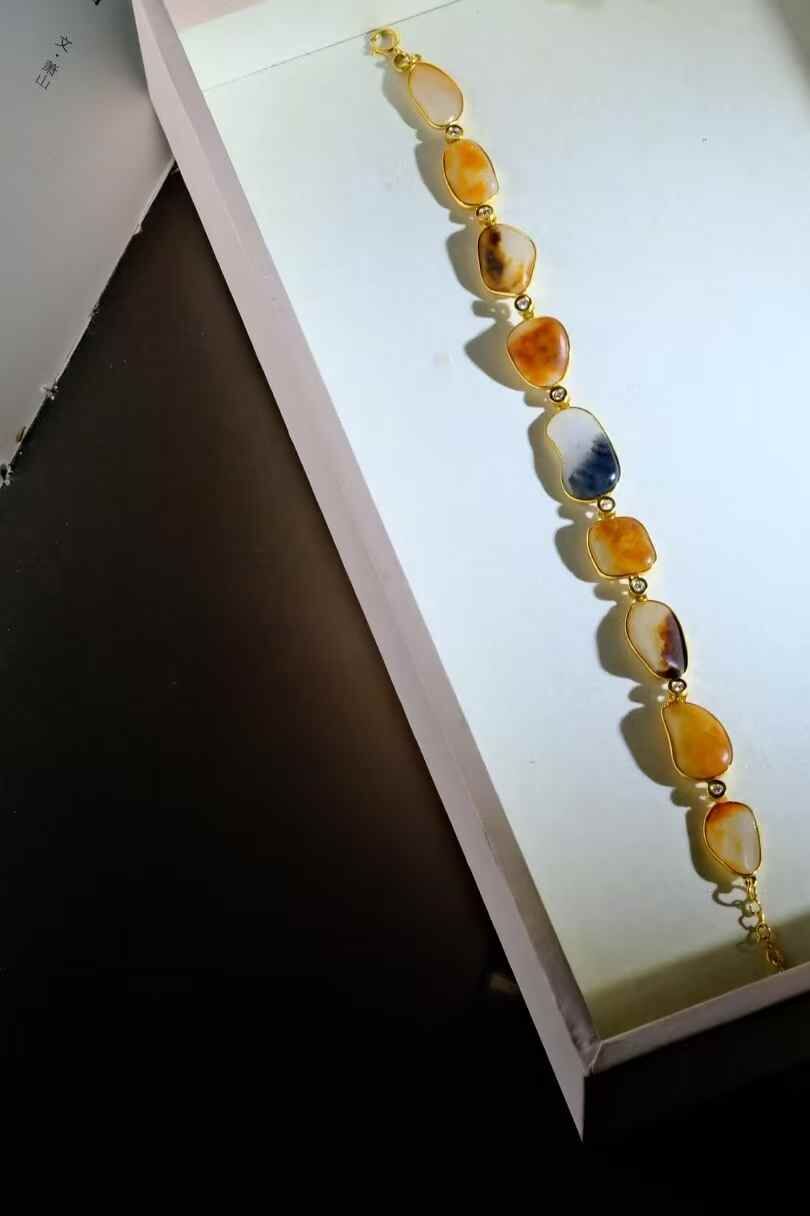 天然和田玉籽料原籽手串,黃沁/黑白青花。上手簡單大氣百搭好看。配飾為18K金。