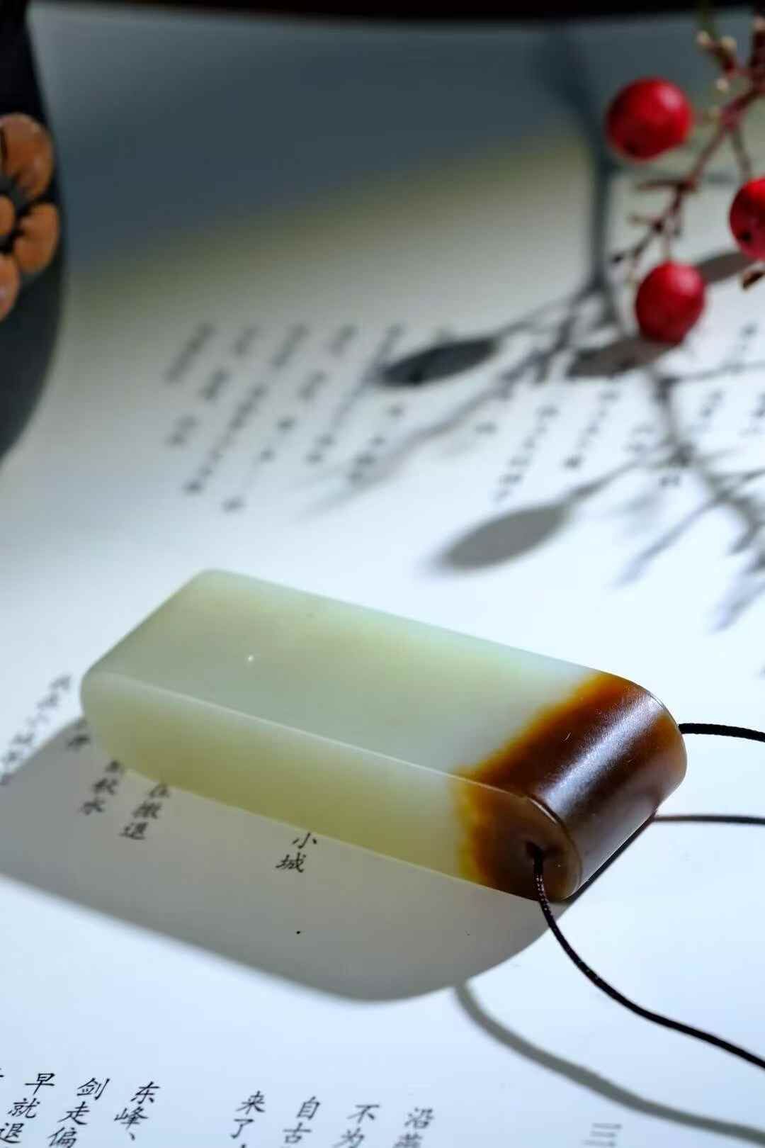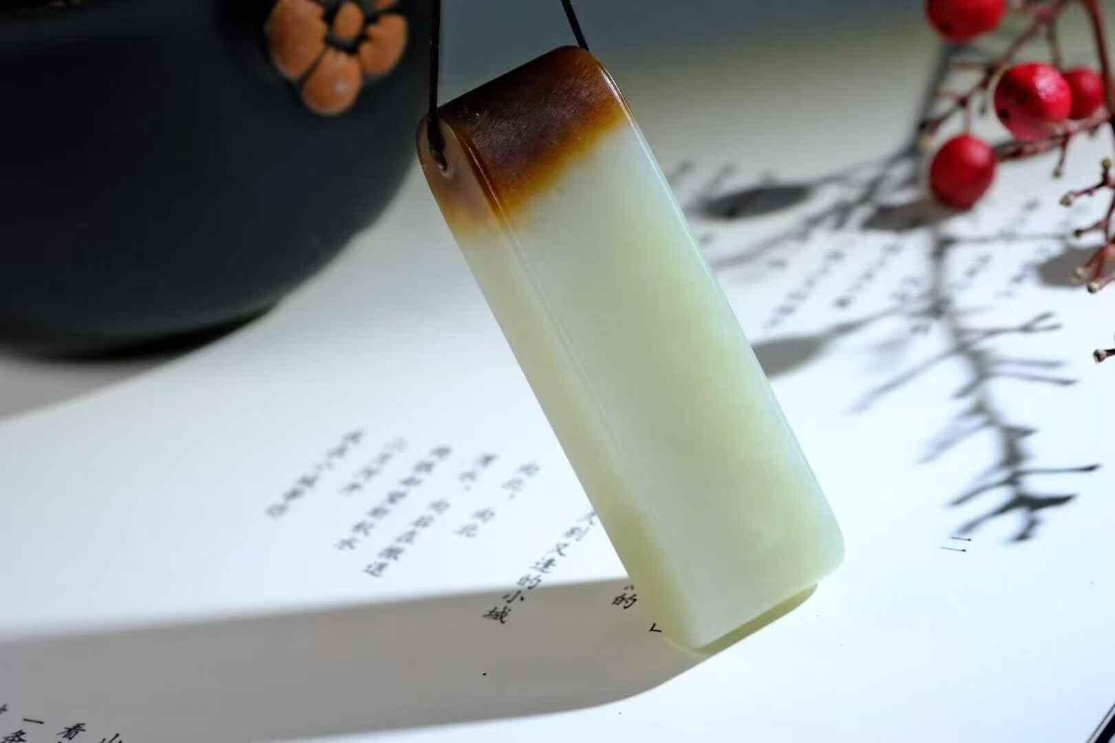 • 和田玉且末料糖青白玉牌,天然和田玉軟玉