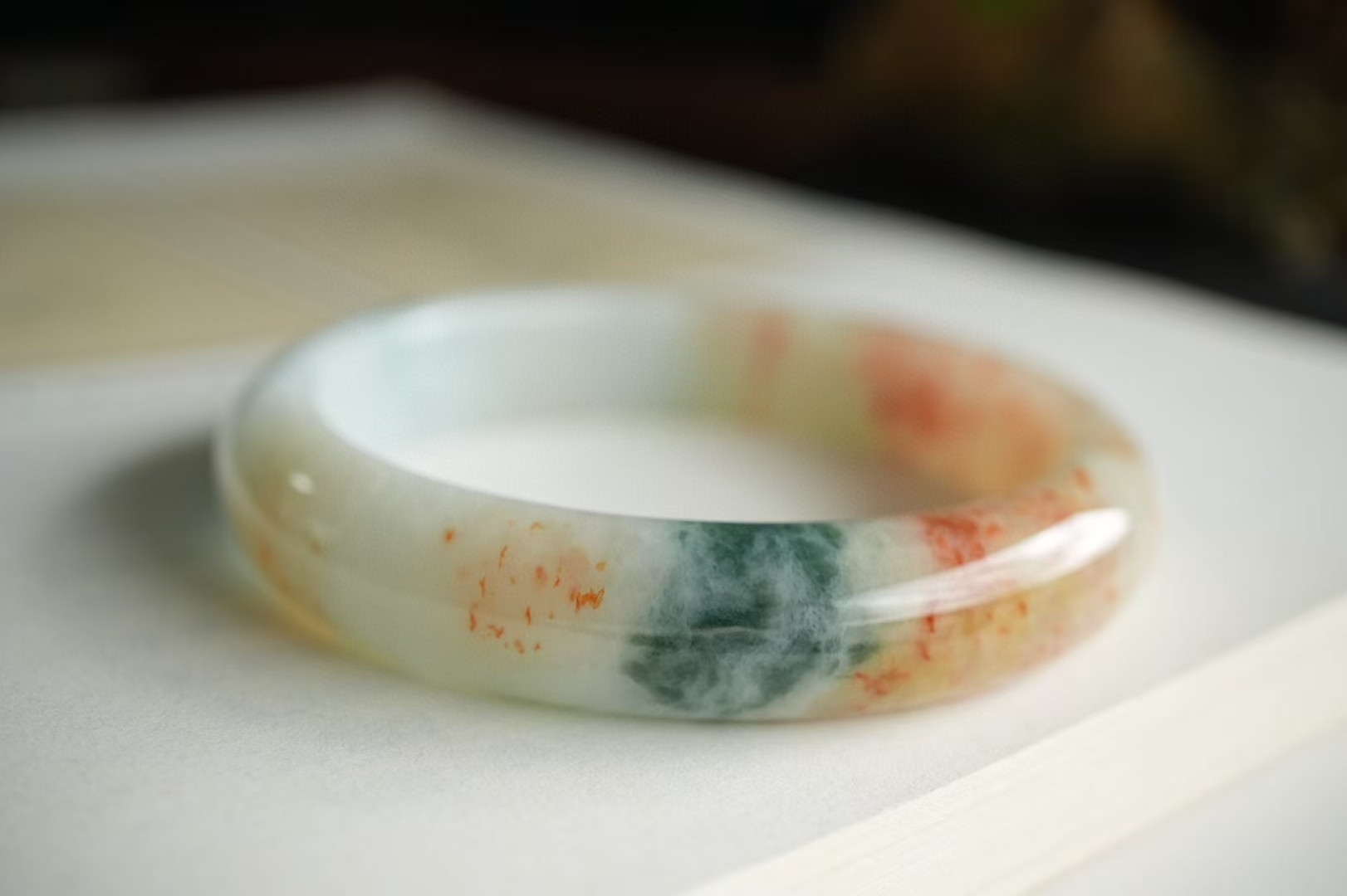 - 天然玉石在不同光線下,會呈現出不同的顏色變化;