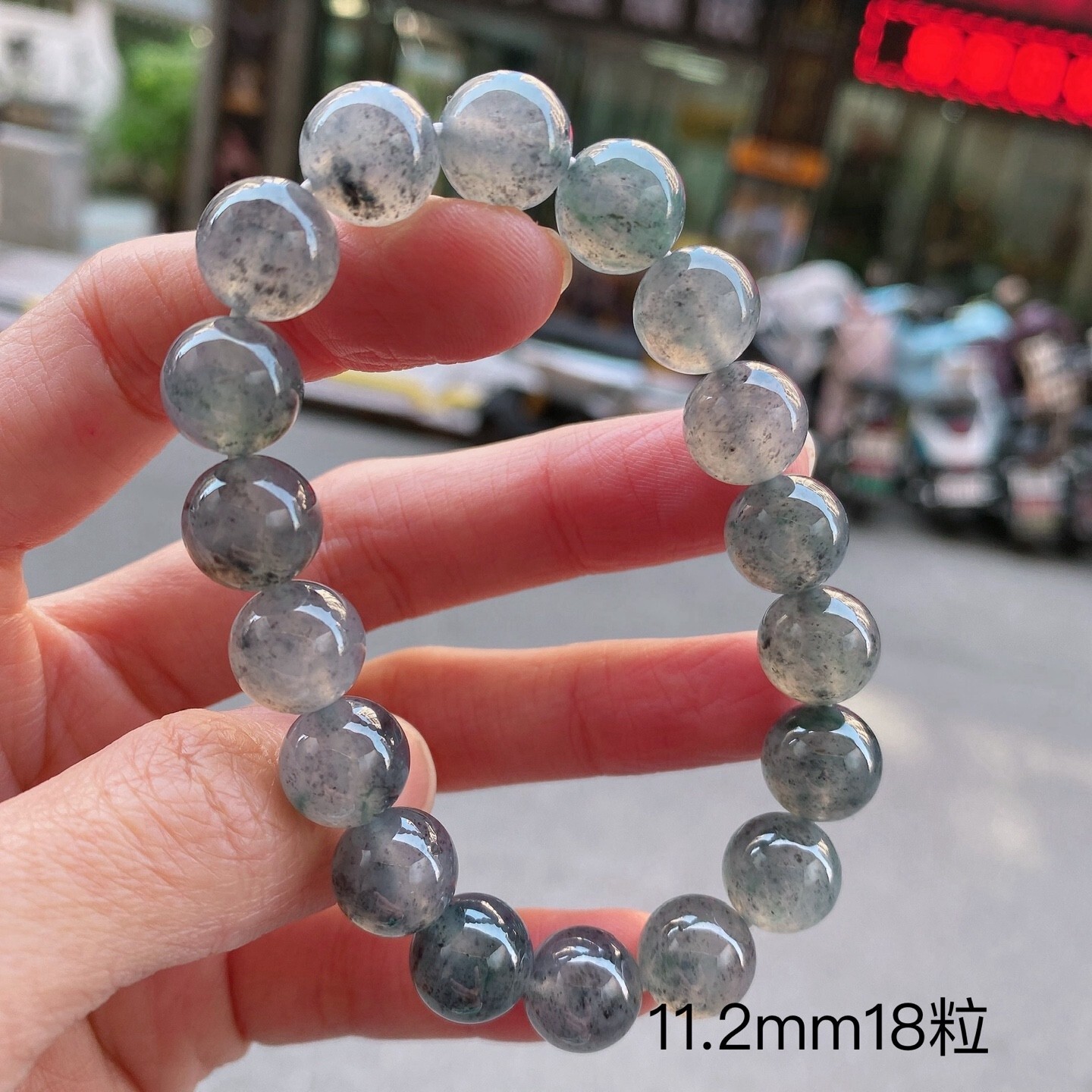 • 翡翠冰烏雞手串 (11.2mm直徑),天然翡翠A玉, 緬甸玉, Jade, Jadeite