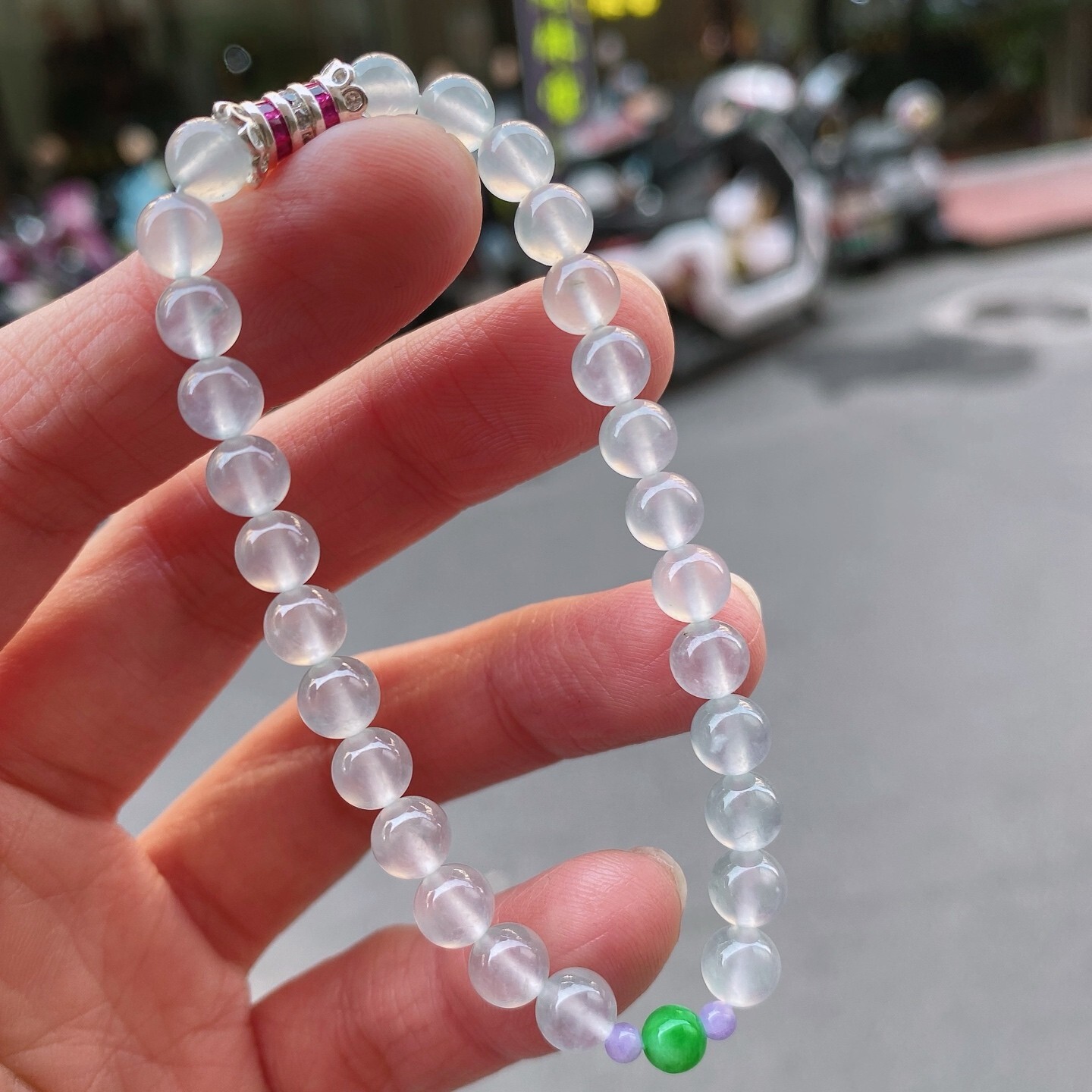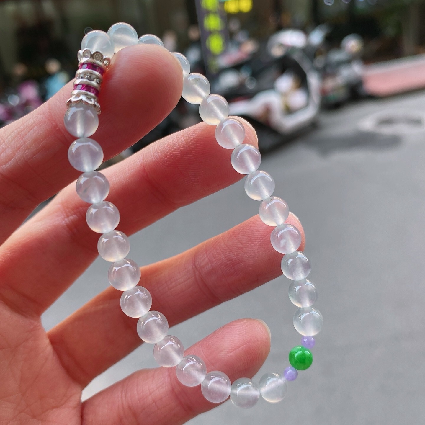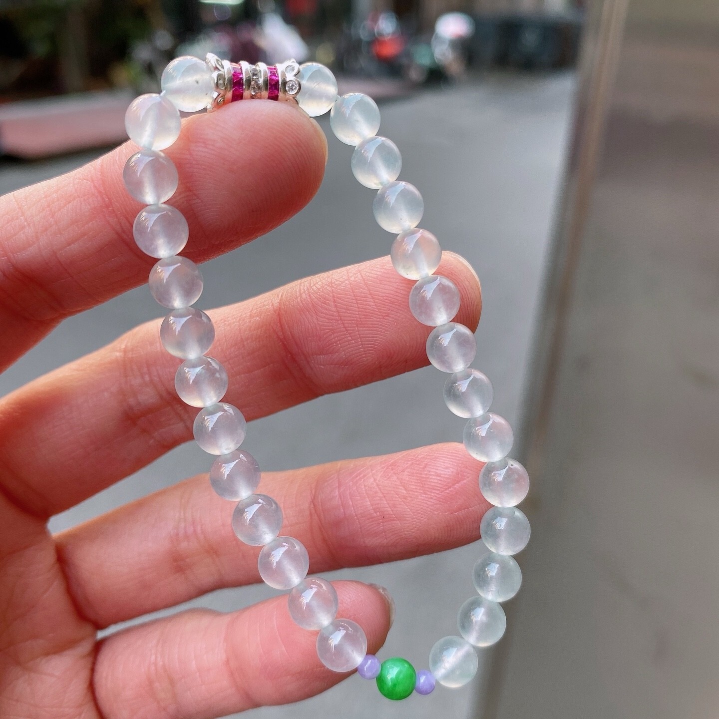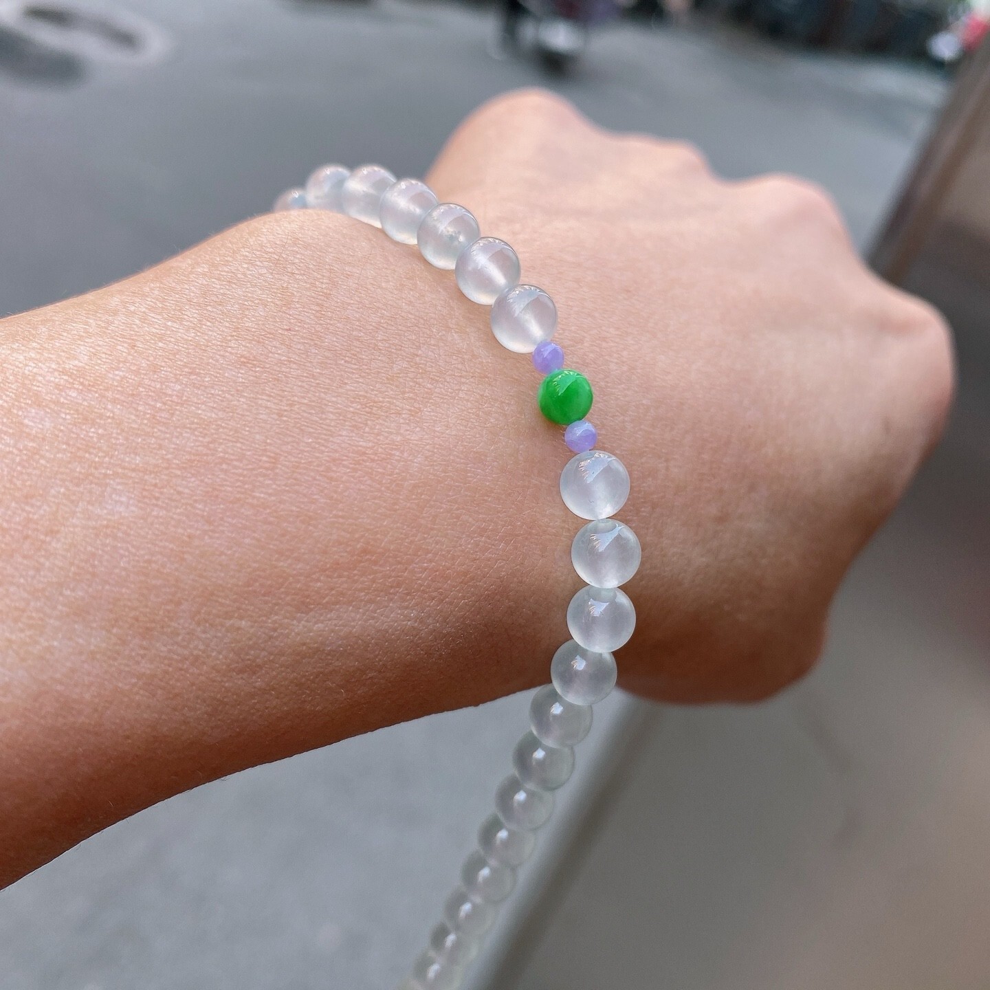 • 翡翠白冰手串 (6mm直徑),天然翡翠A玉, 緬甸玉, Jade, Jadeite
