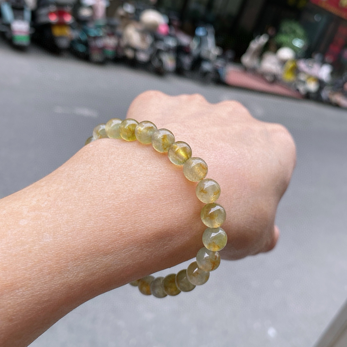 122423 翡翠冰黃翡手串 (7.5mm直徑)