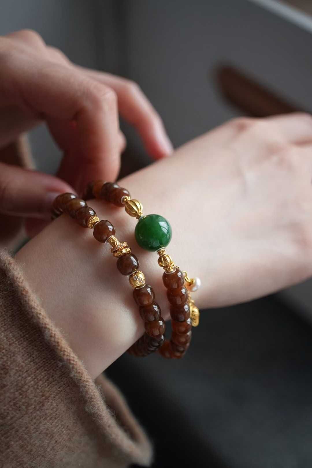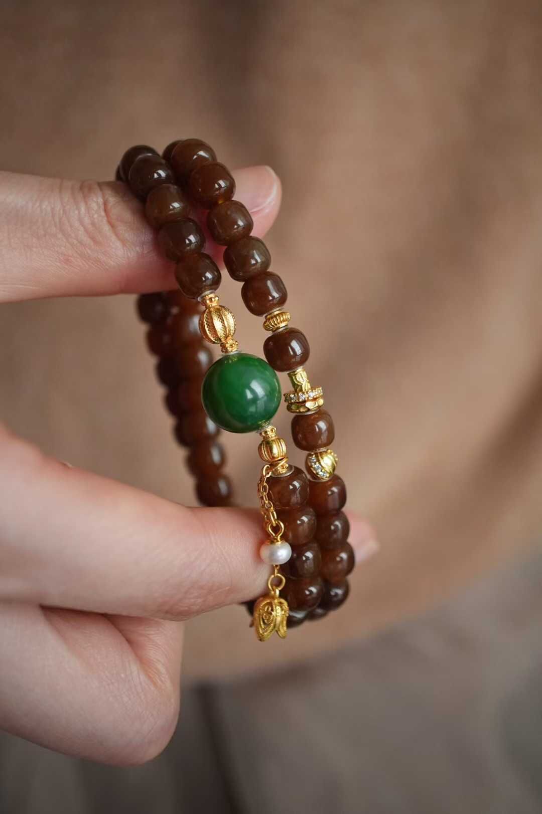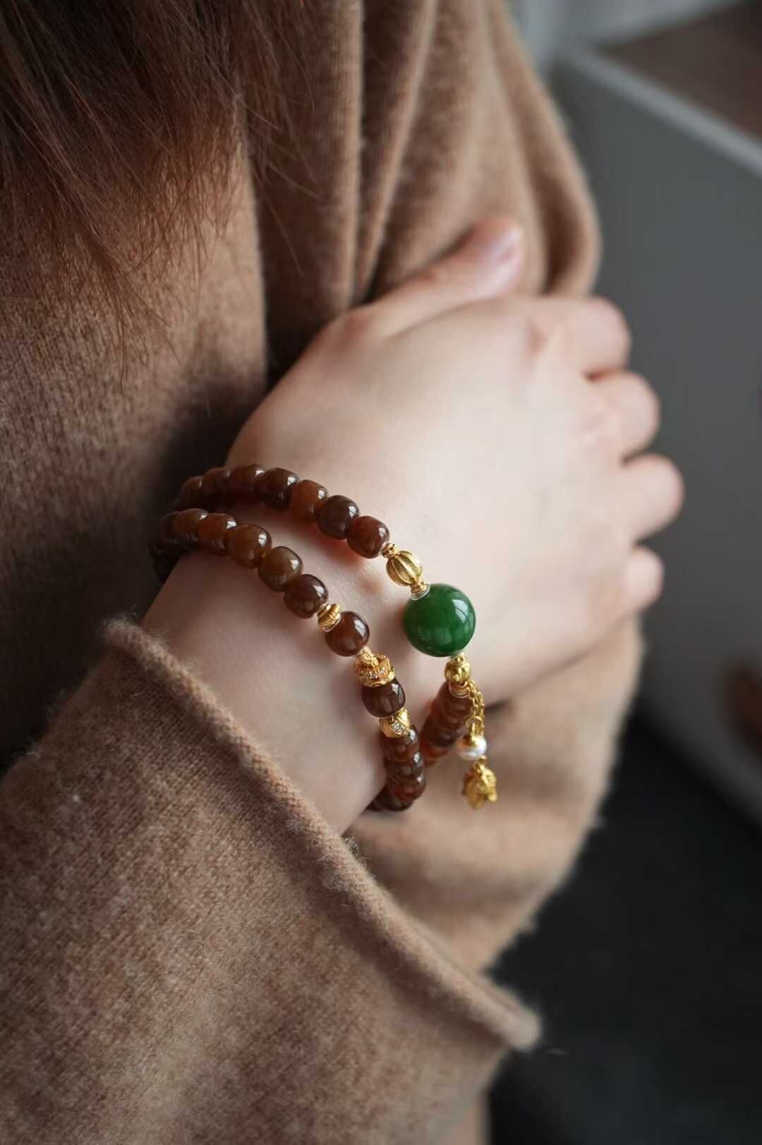 122443 和田玉純糖焦糖老型珠手鏈