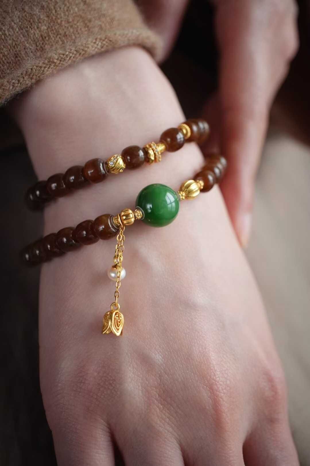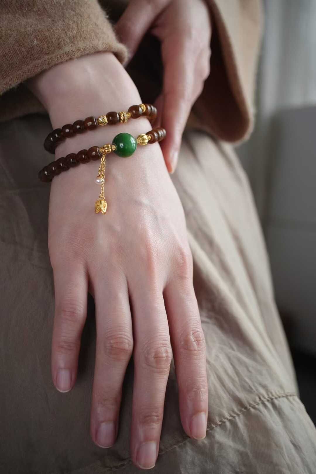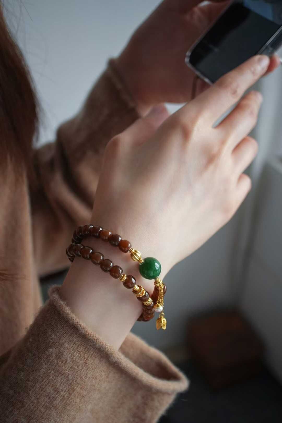 122443 和田玉純糖焦糖老型珠手鏈