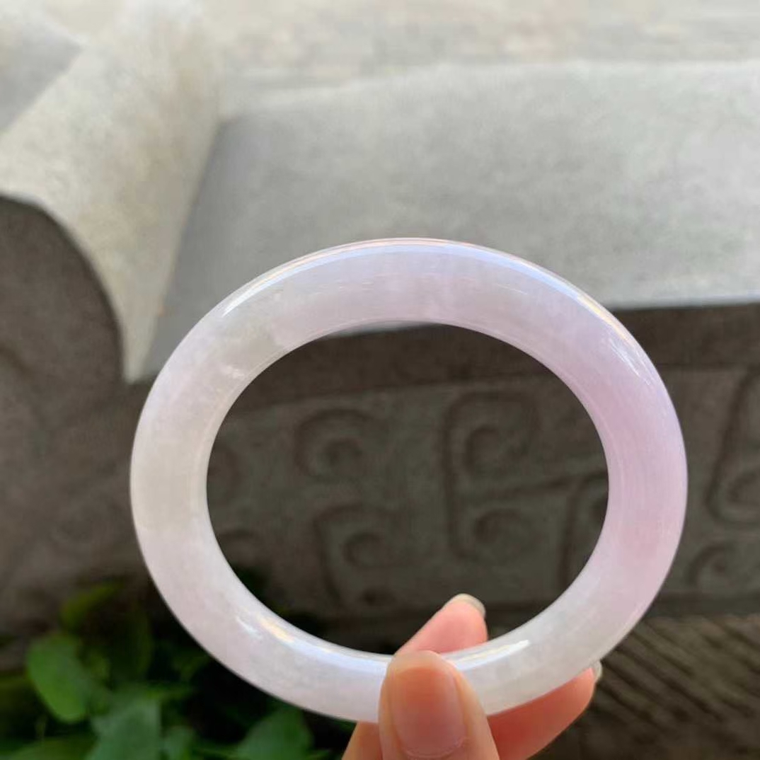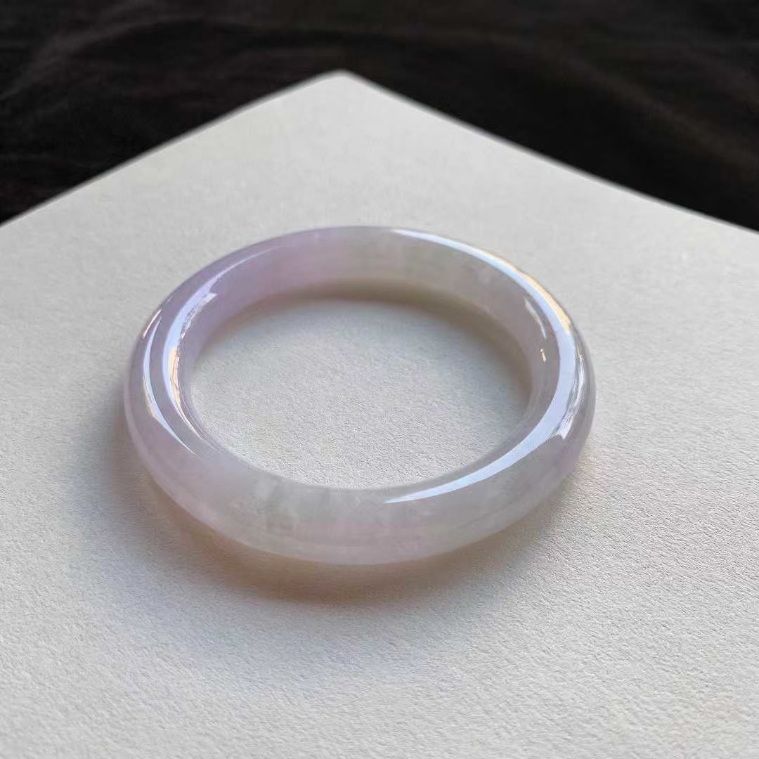 • 翡翠冰粉紫圓條手鐲,天然翡翠A玉, 緬甸玉, Jade, Jadeite